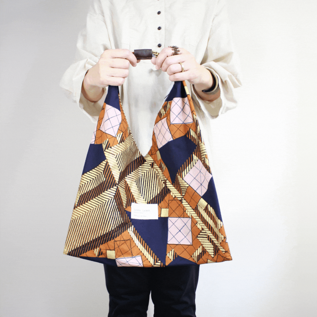 Each combination of the front and back fabric patterns is one-of-a-kind. Each double Me! Bag is the only one in the world, realized by the sustainable use of leftover fabric.
