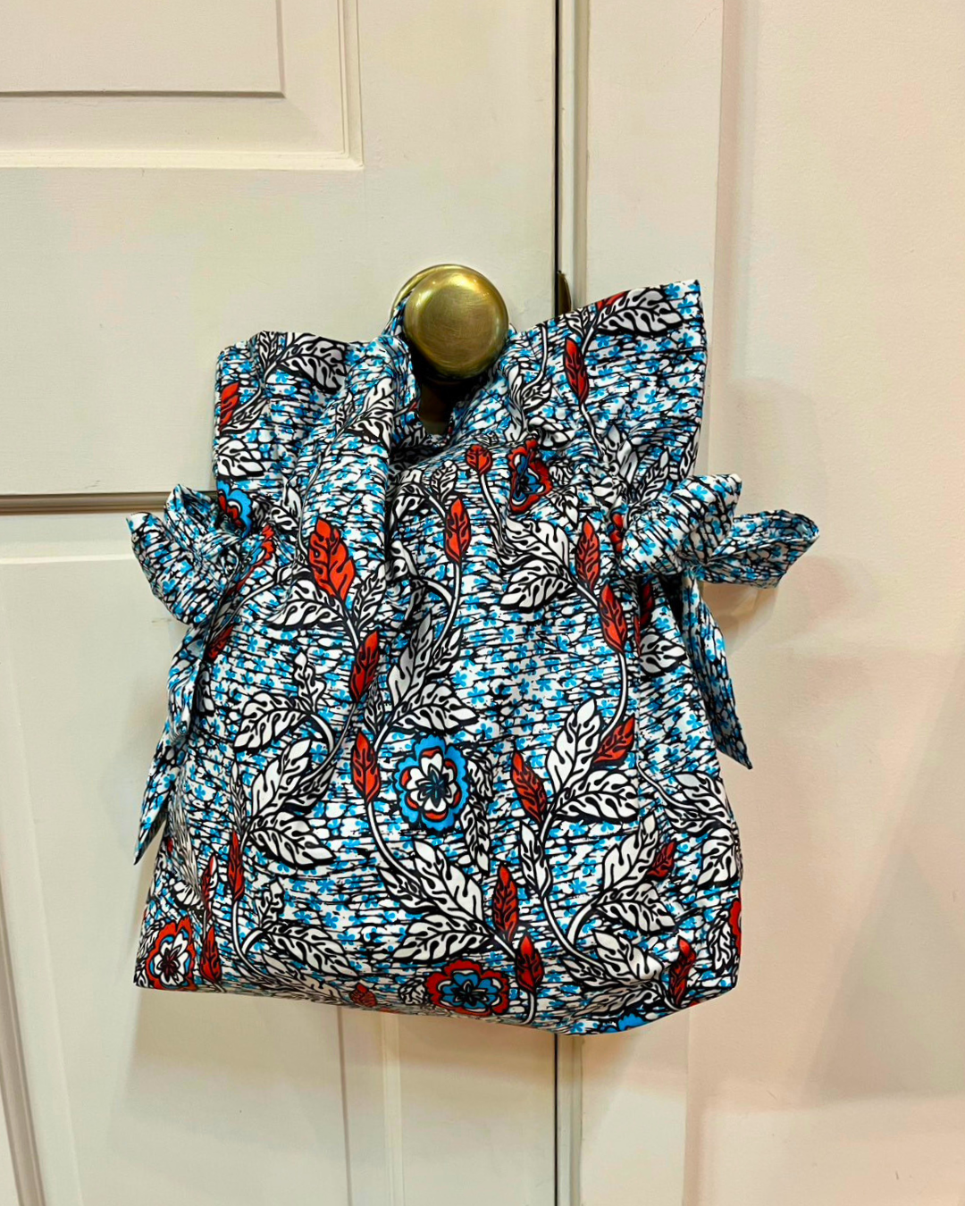 The lightweight bag made of wax print material will make your heart light and bouncy.