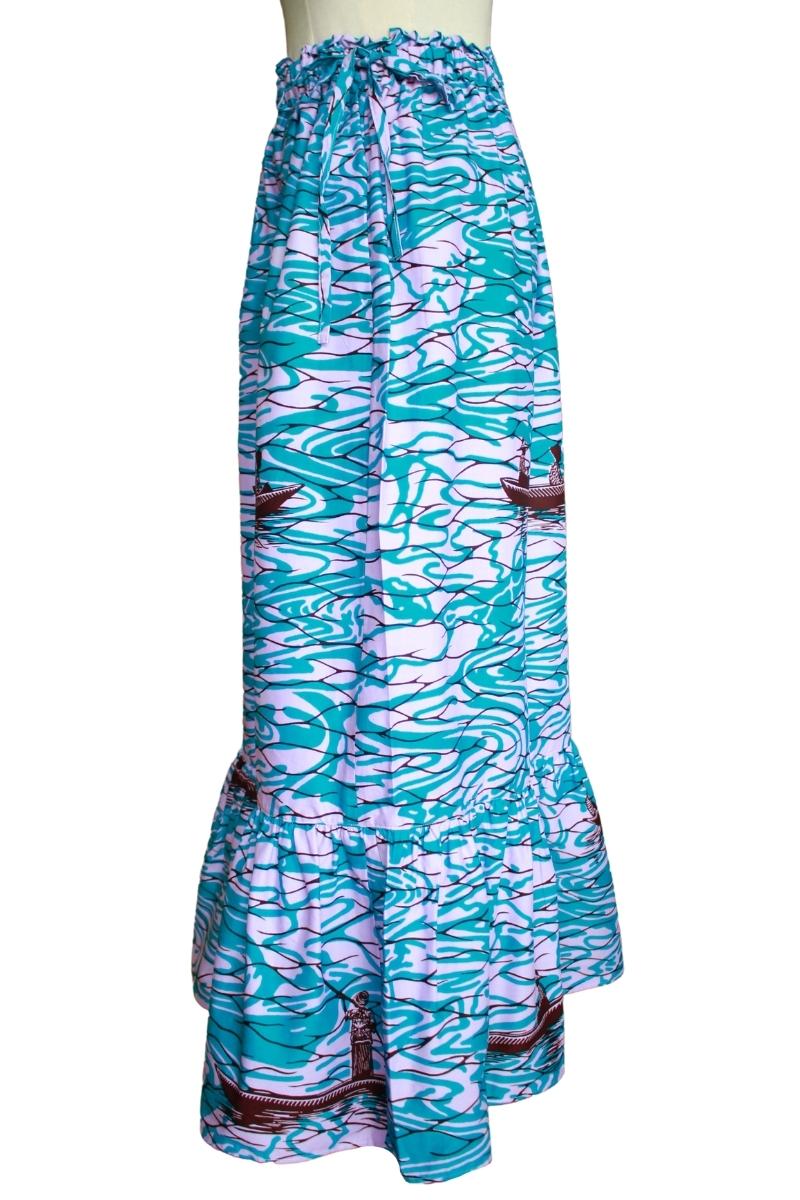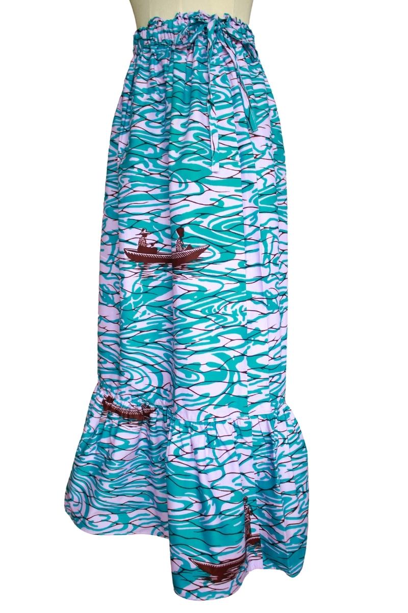 ティアードスカート(ボート柄 アクア系)