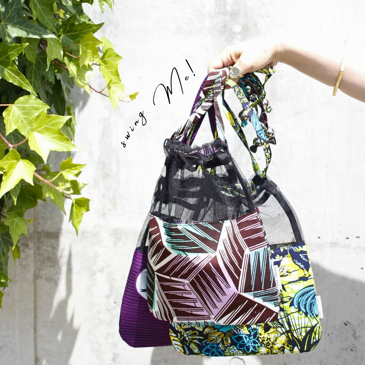 軽やかなフォルムの巾着タイプの"swing Me!バッグ"。