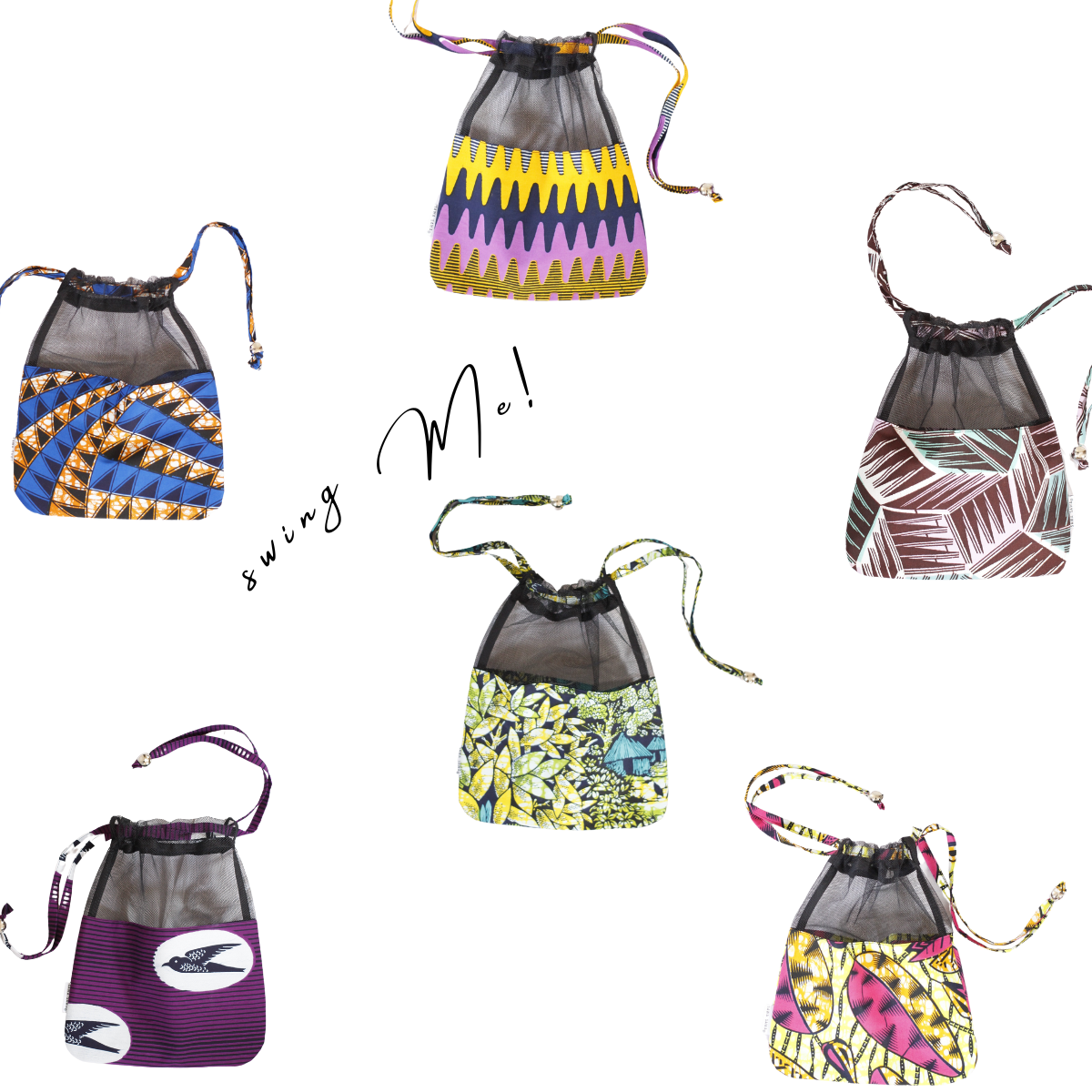With "swing Me! Bag,” the wax print on the bag serves as a blindfold.