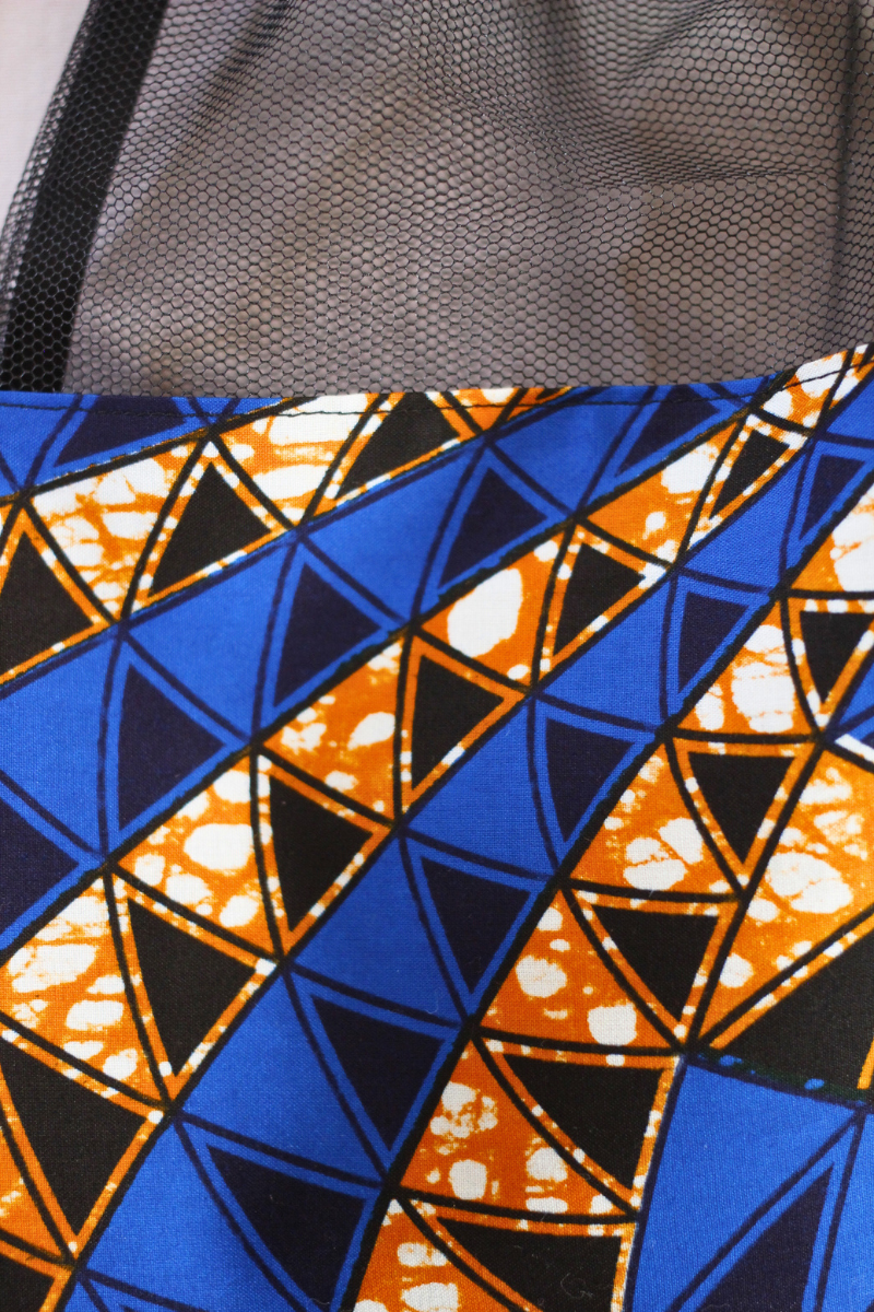 The unique and colorful VLISCO wax prints are paired with mesh sheer material, enabling you to be your own color while taking in the trend.