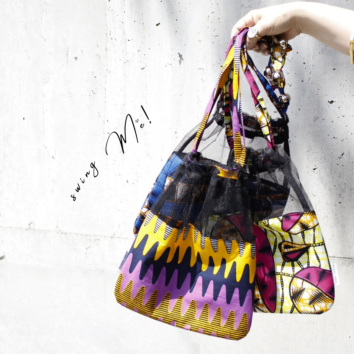 軽やかなフォルムの巾着タイプの"swing Me!バッグ"。