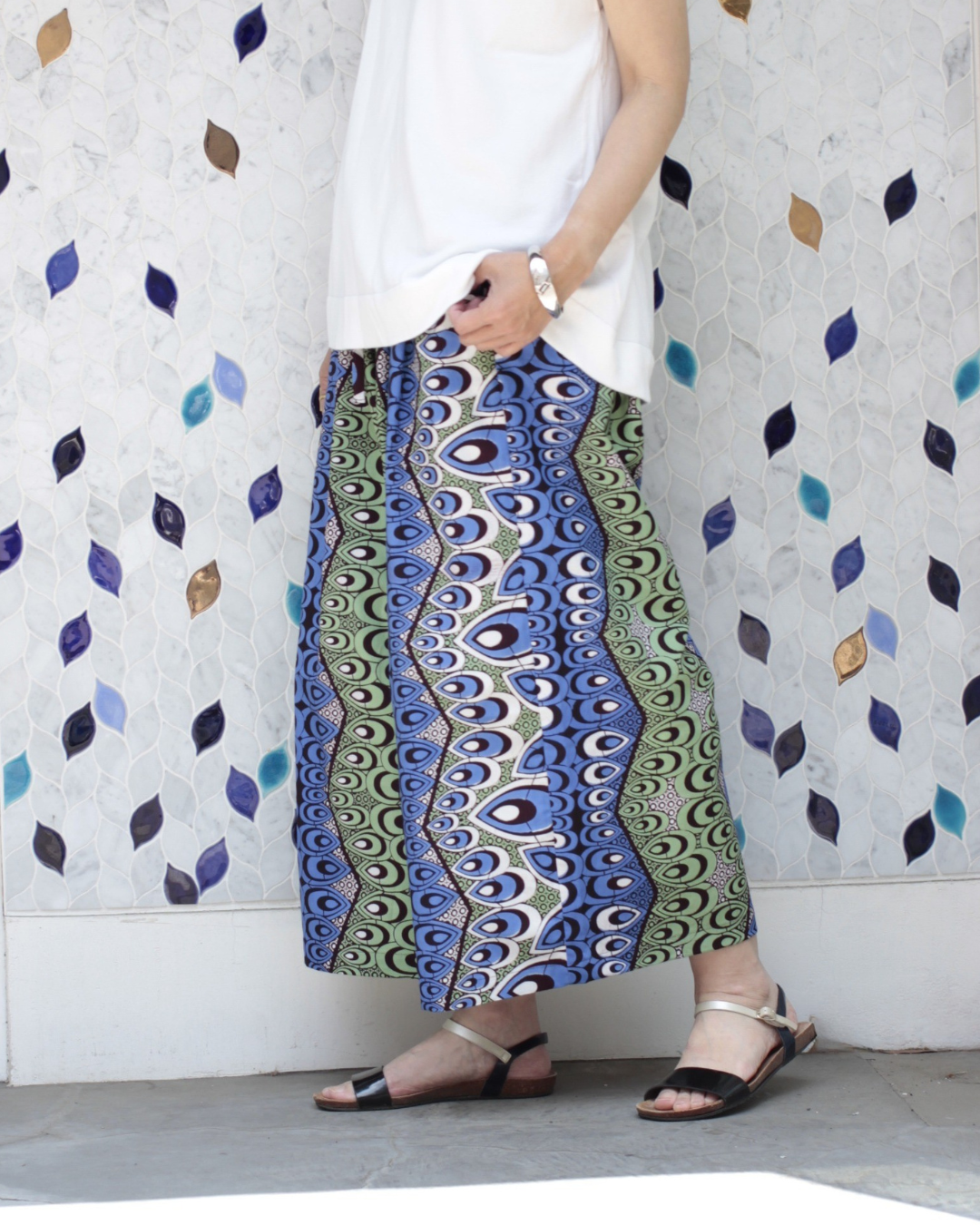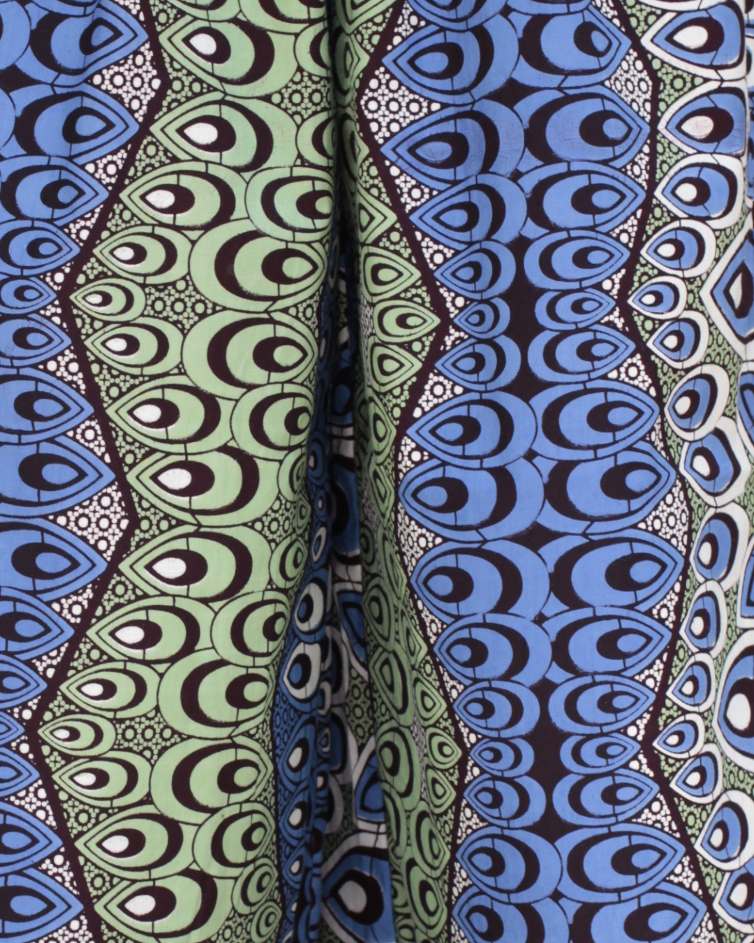 コットン100%にろうけつ染めの技法で染色したテキスタイル。そのため、独特のバブルやクラック(ひび割れなど)があります。VLISCO製テキスタイルに比べると少し柔らかな風合いです。