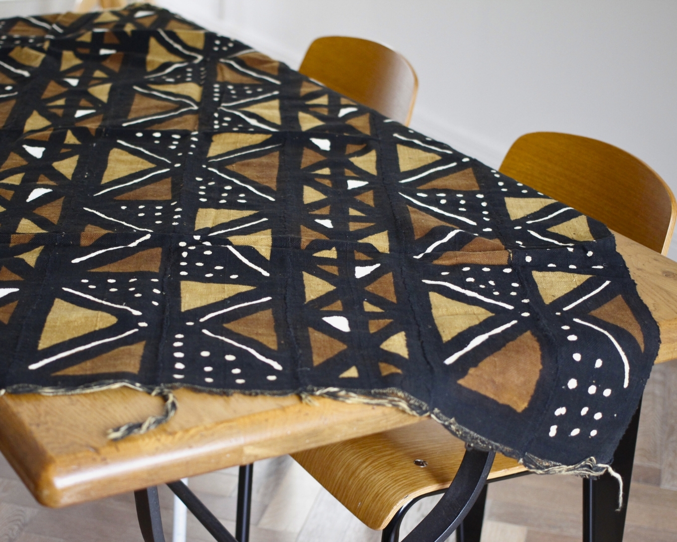「泥染め」を意味するこの布は、植物染料と泥を使い、時間をかけて染め上げられます。