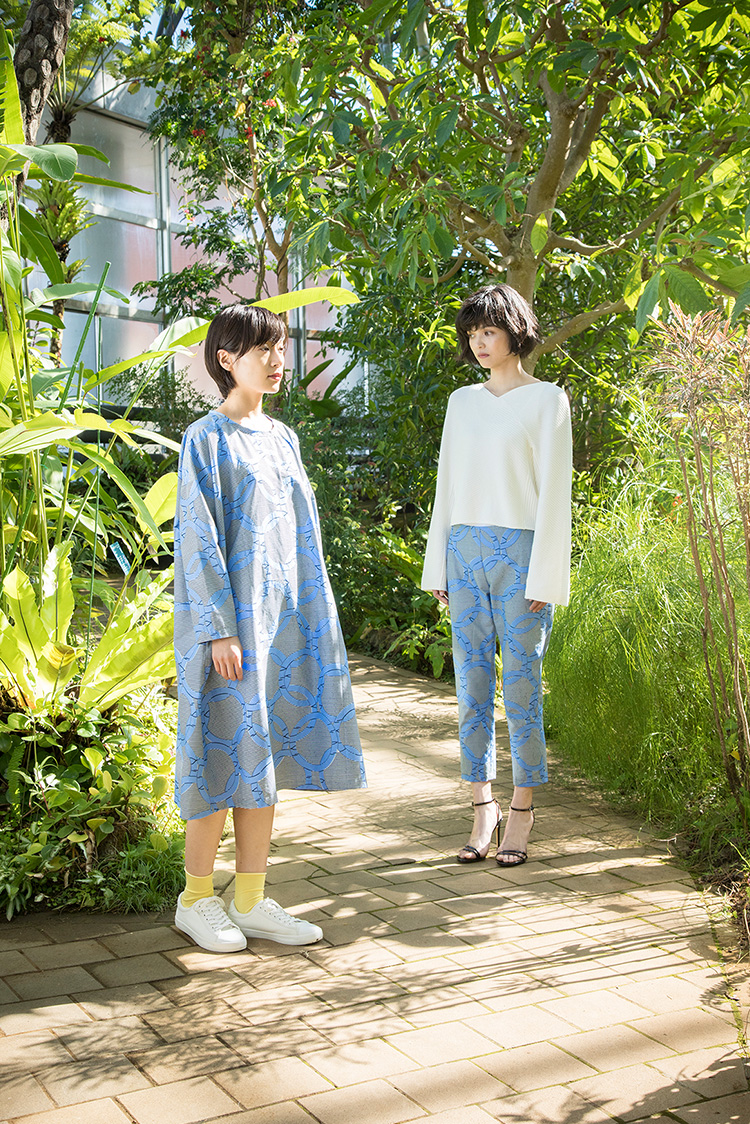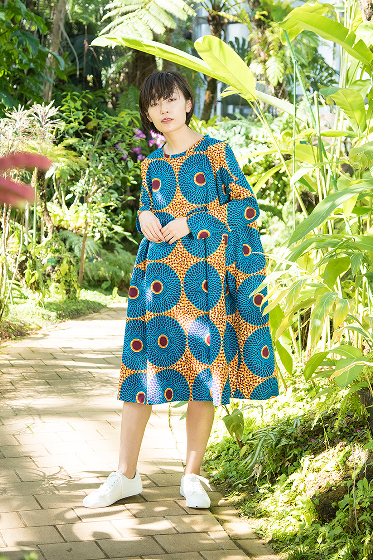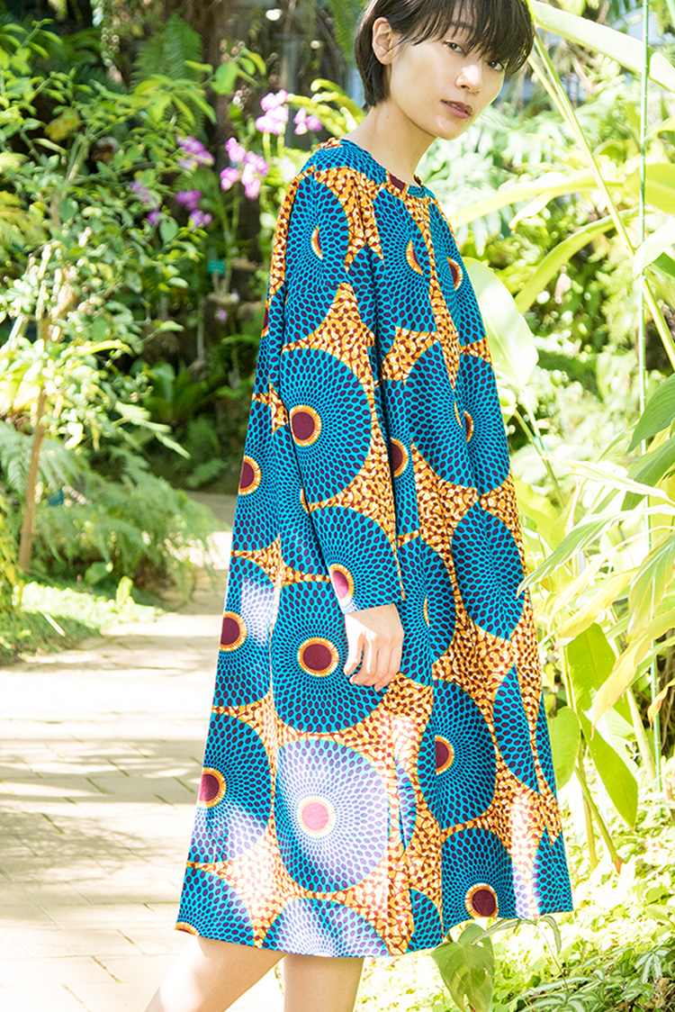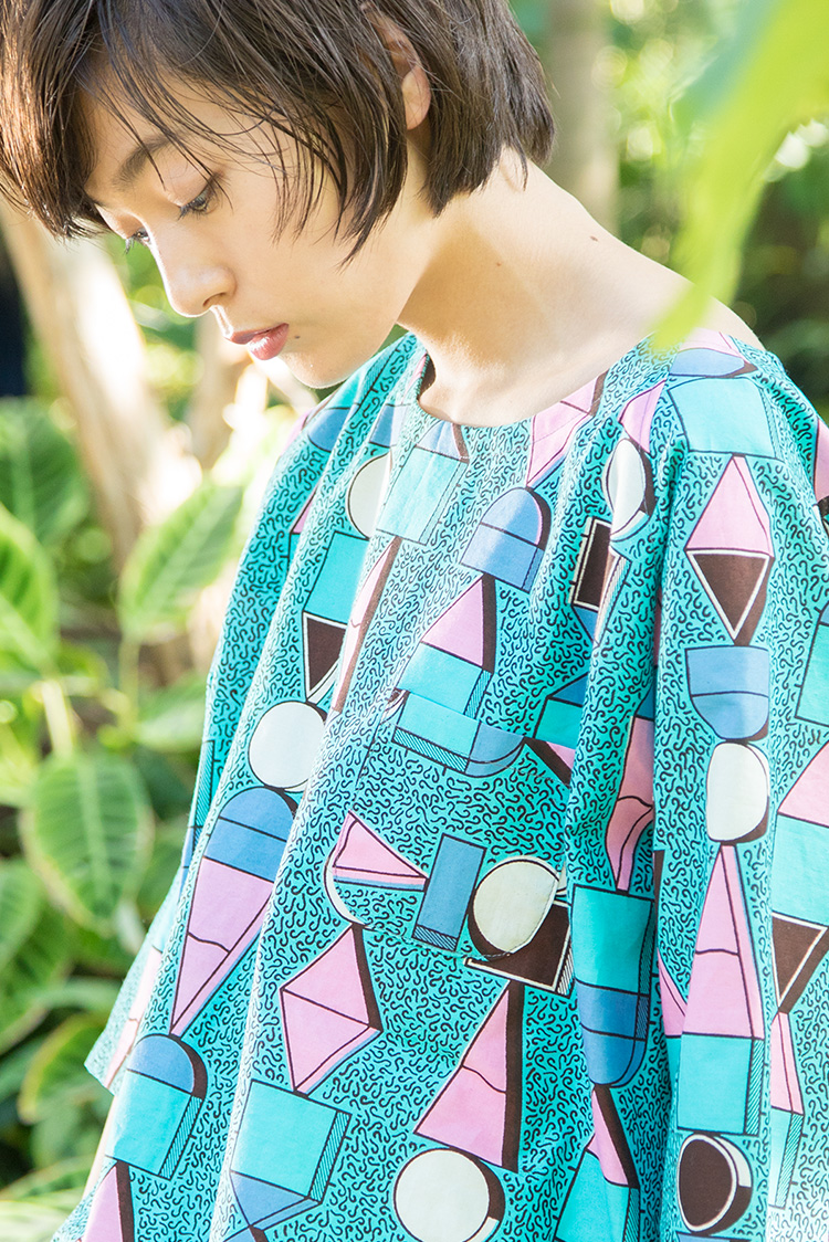 春の陽射しを感じさせるリラックスだけどアーバンなスタイル。エシカルなプリント生地にTOKYOエッセンスを加えた着こなしを楽しんで。