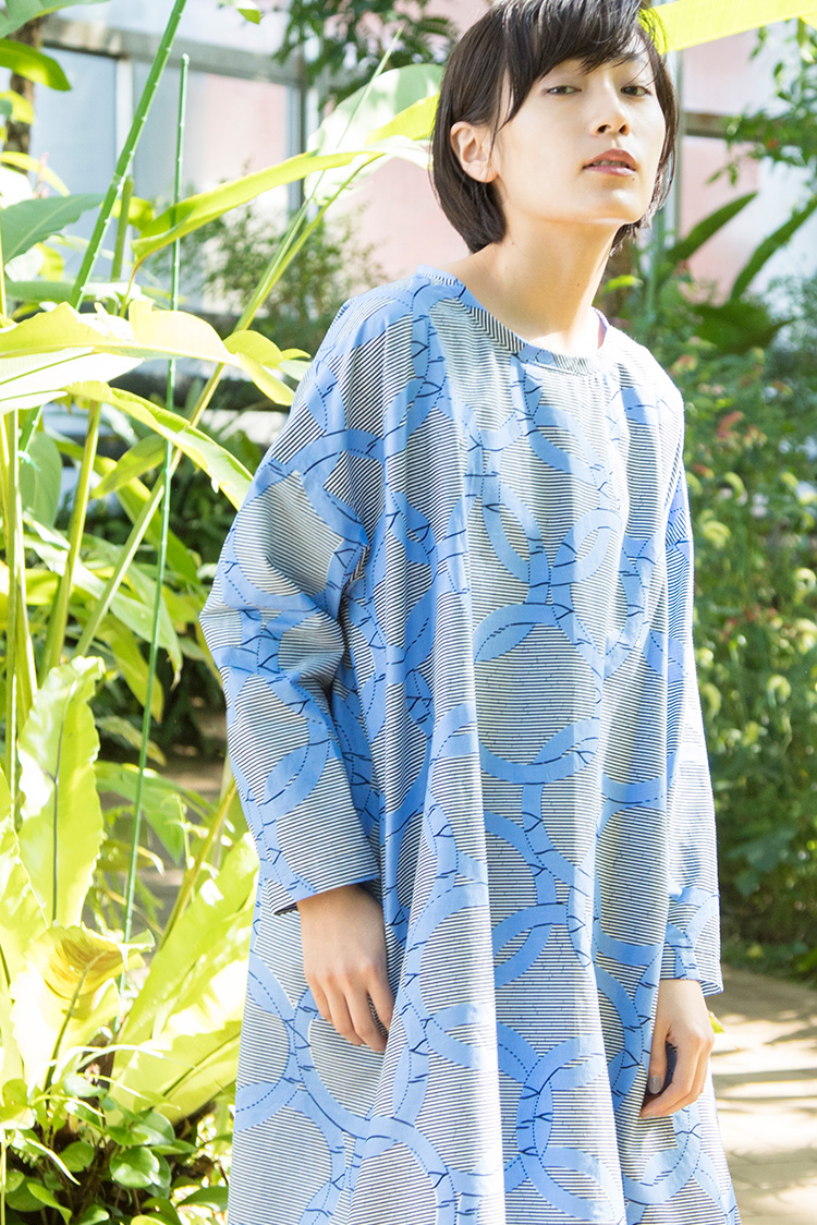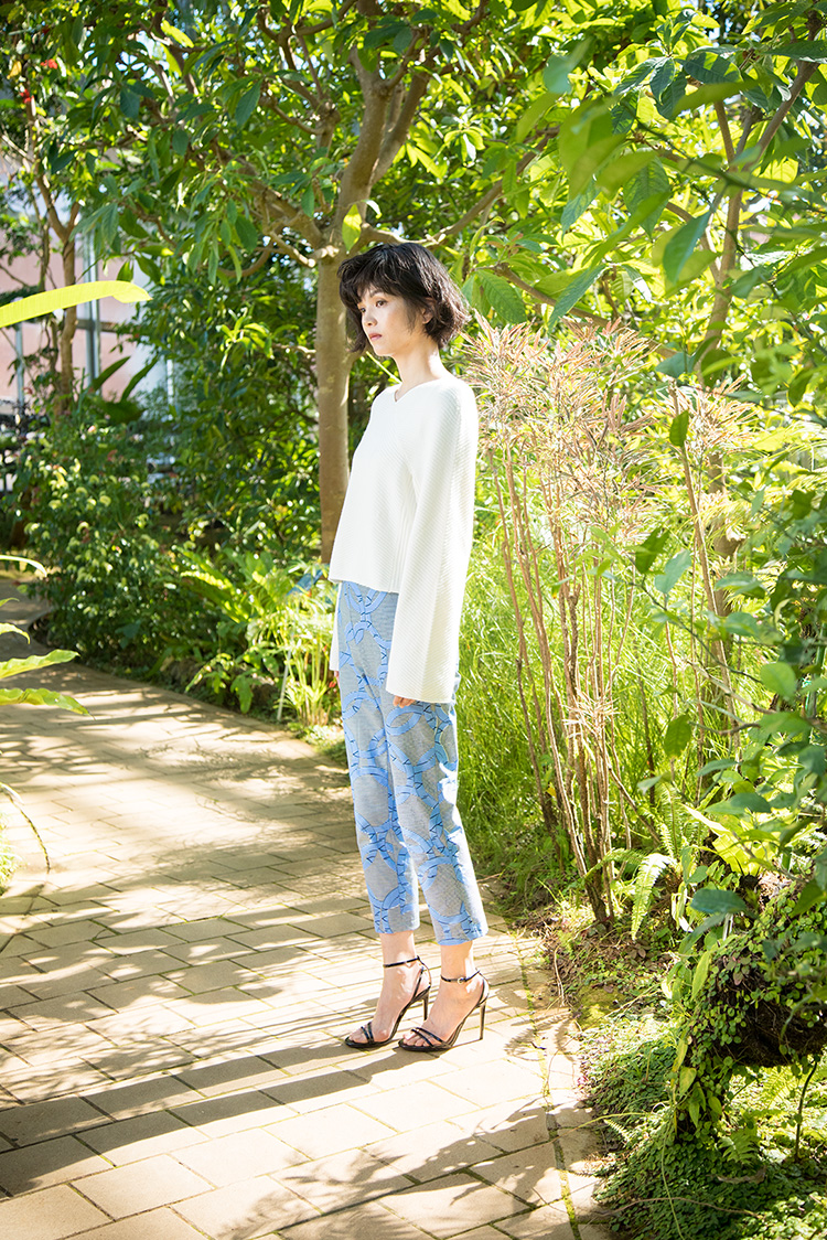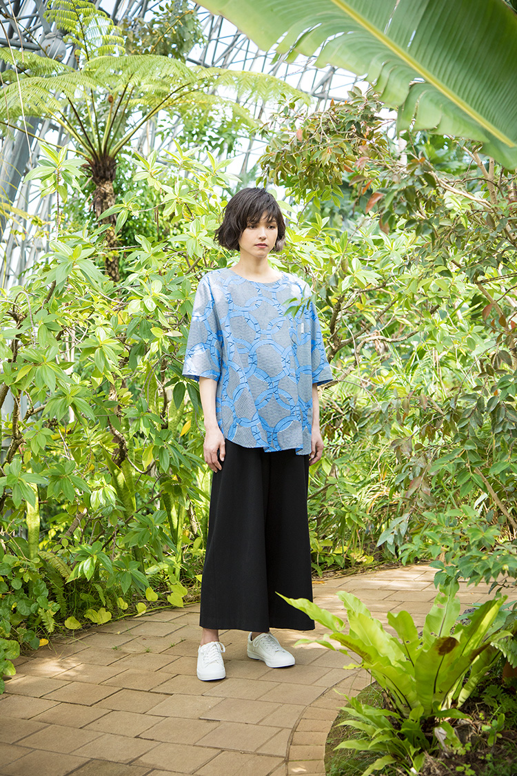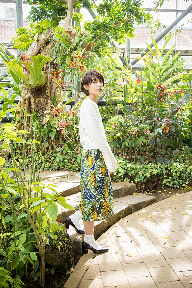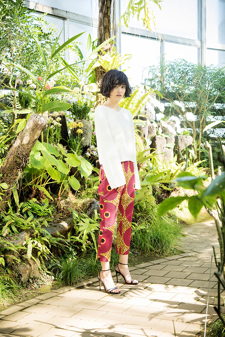春の陽射しを感じさせるリラックスだけどアーバンなスタイル。エシカルなプリント生地にTOKYOエッセンスを加えた着こなしを楽しんで。