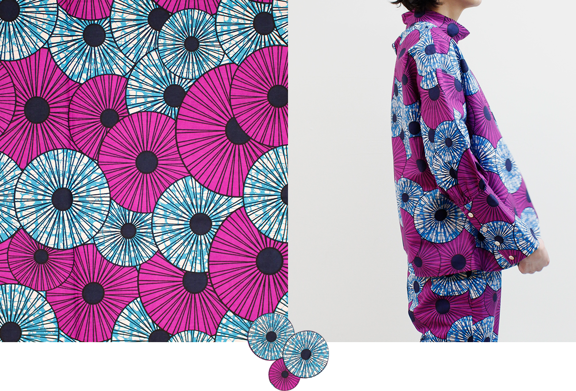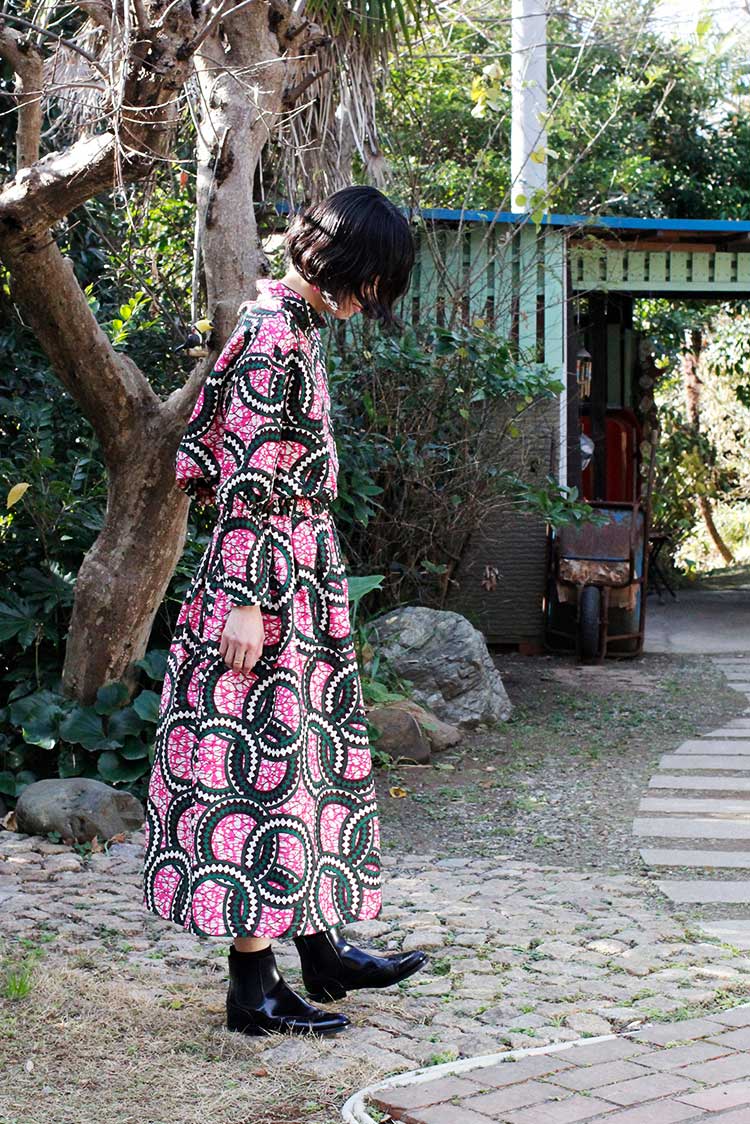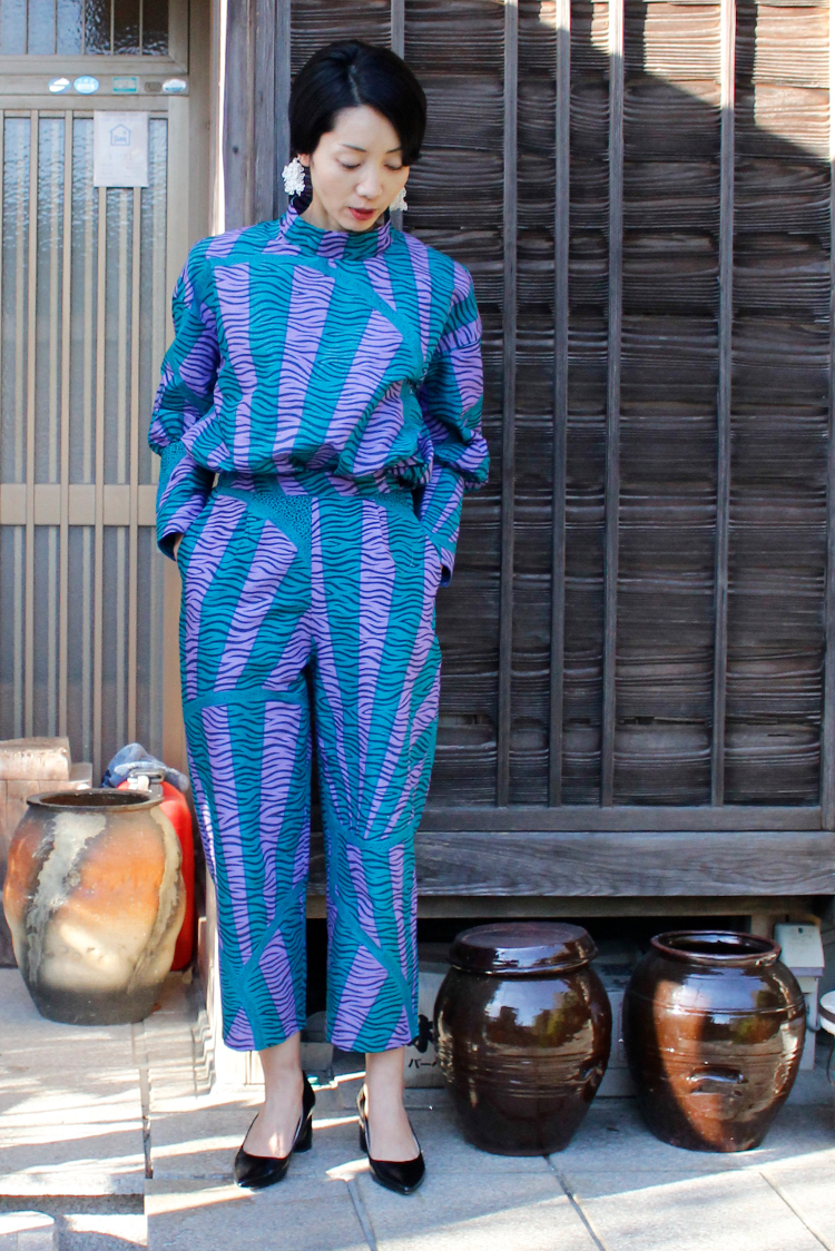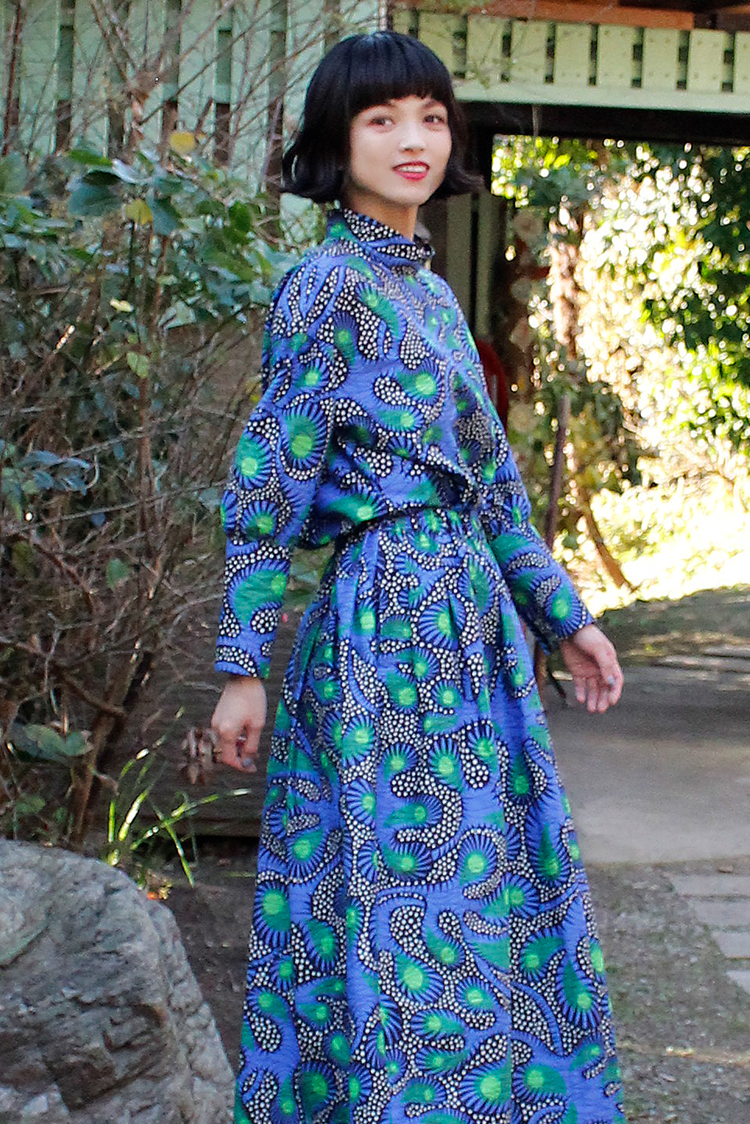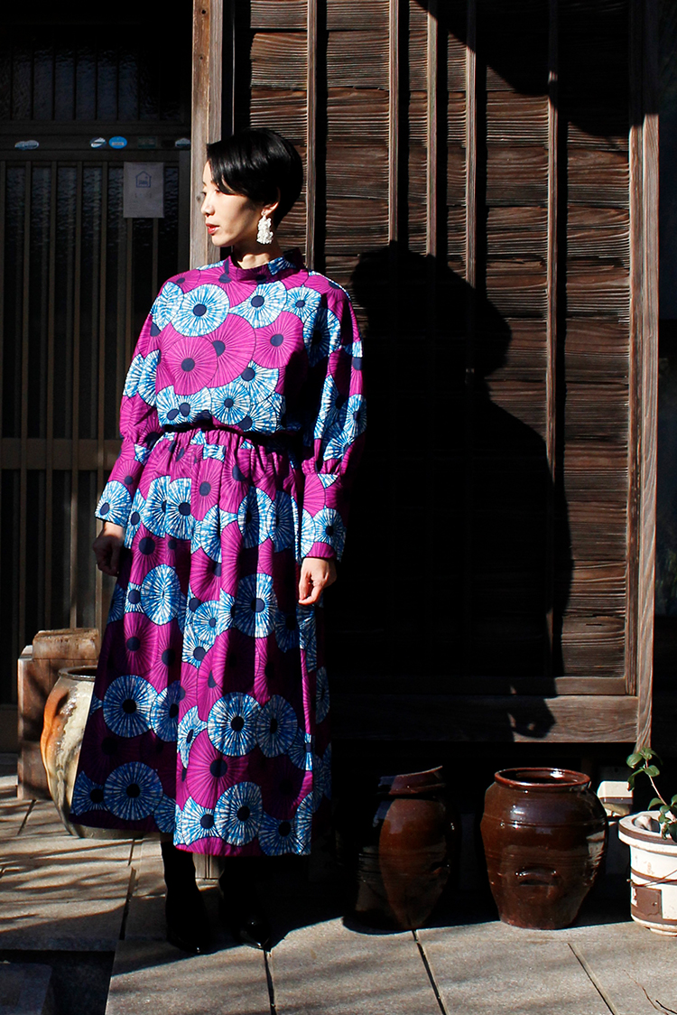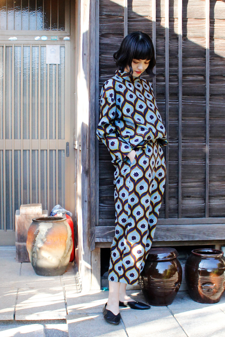 春の気配を感じてポジティブな色彩に心躍る。エシカルなプリント生地にTOKYOエッセンスを加えた着こなしを楽しんで。