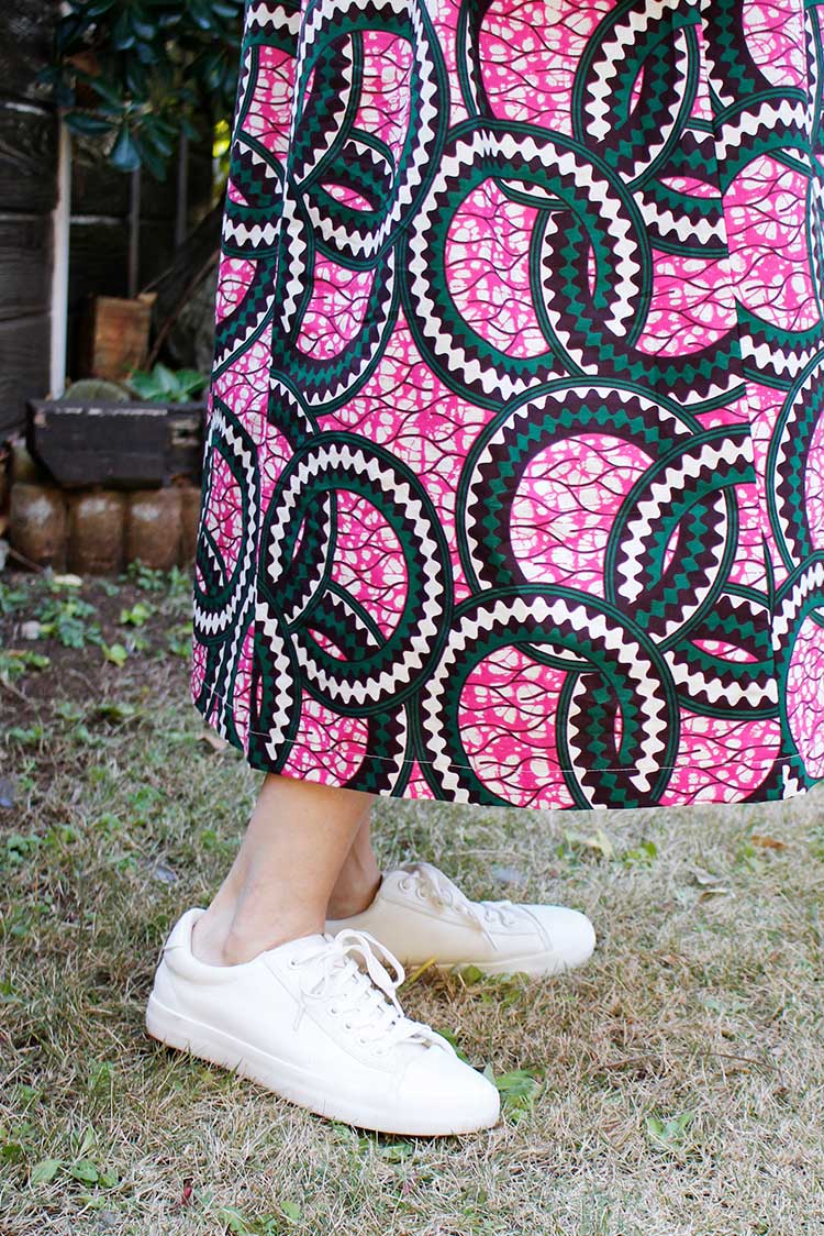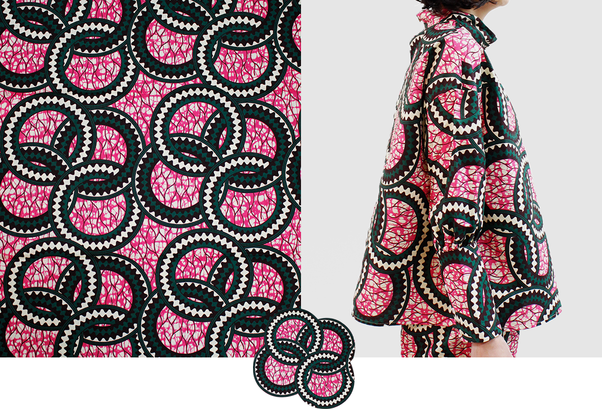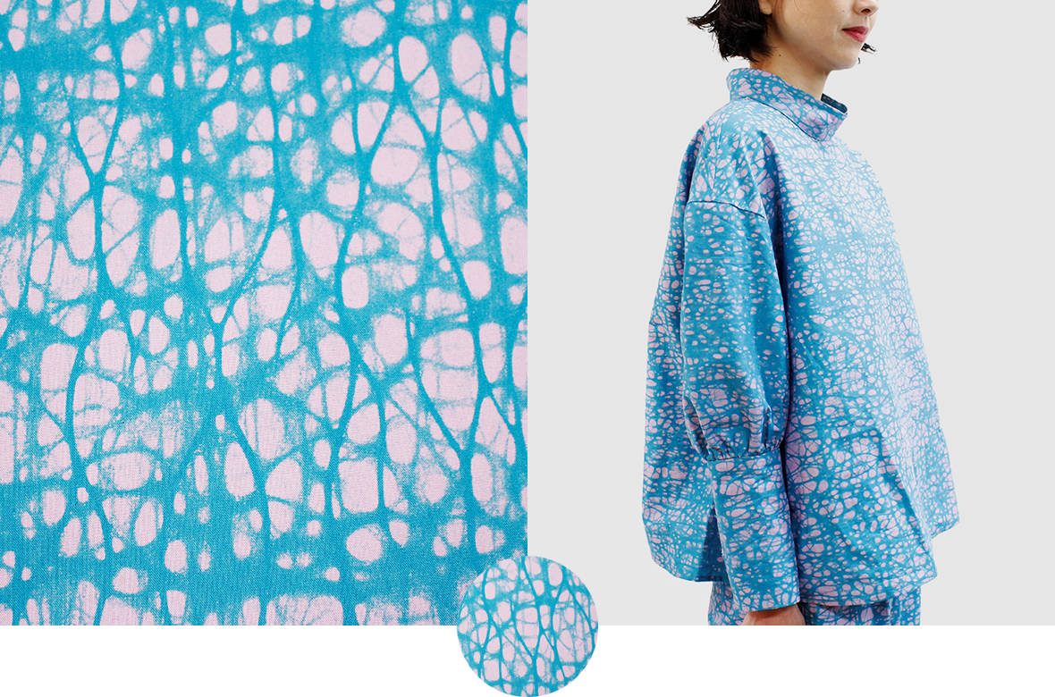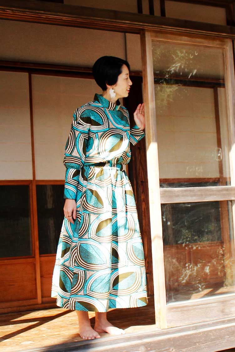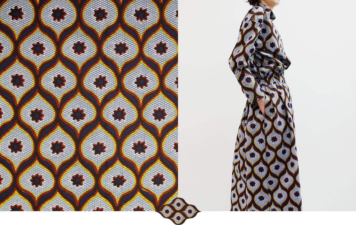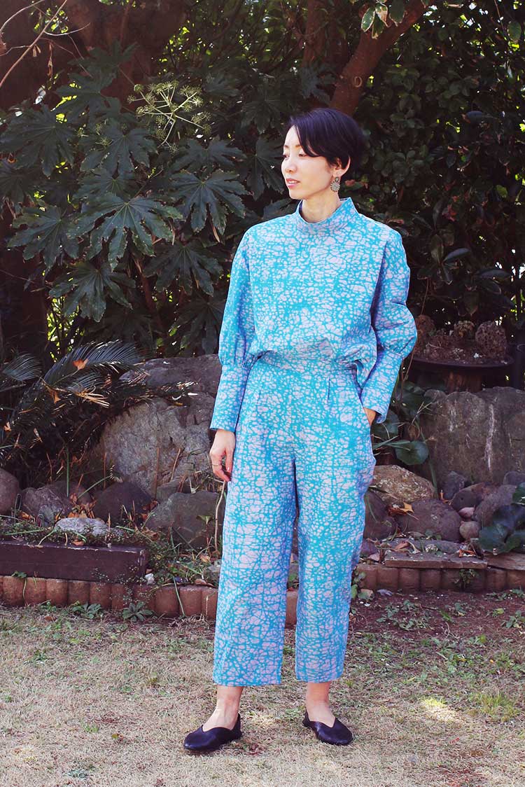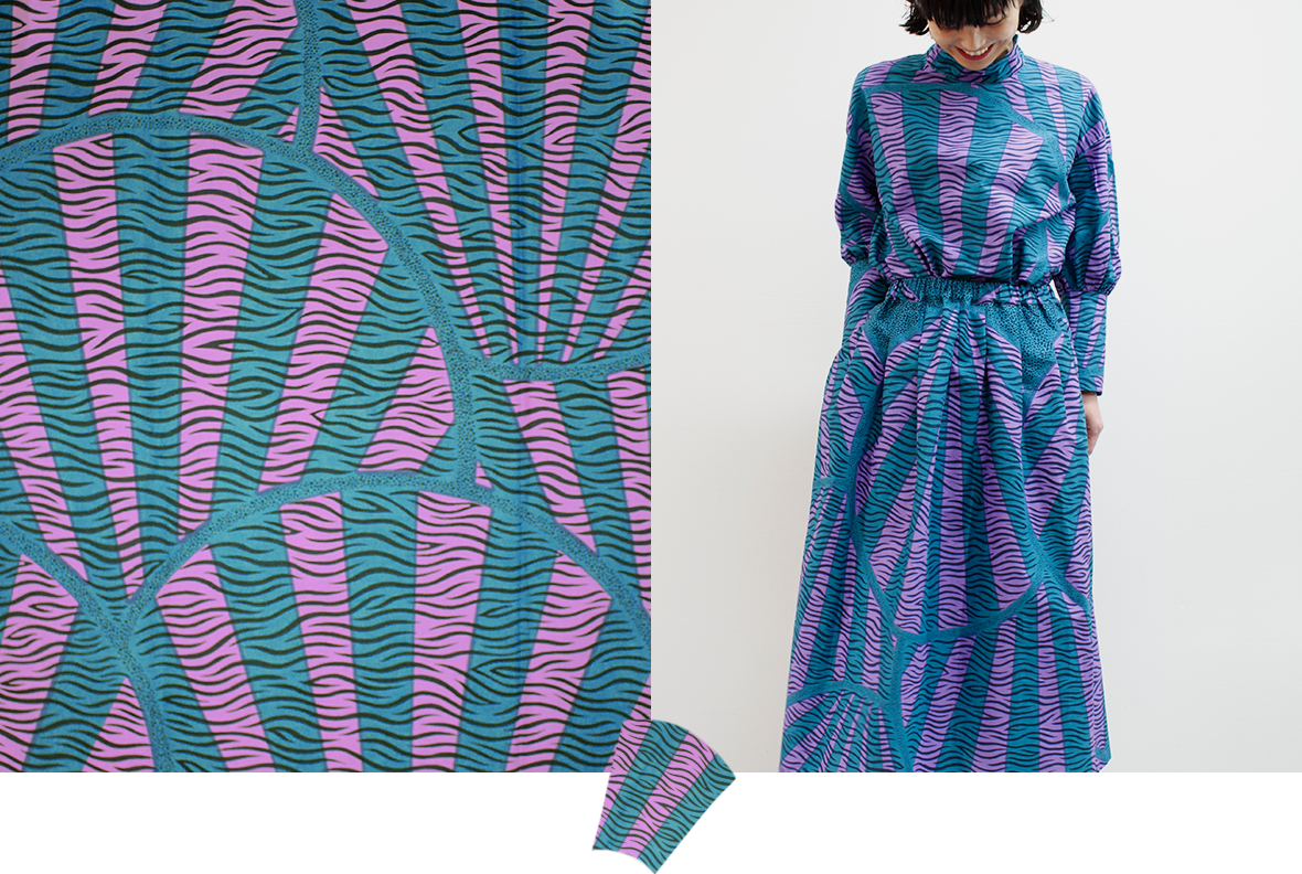 春の気配を感じてポジティブな色彩に心躍る。エシカルなプリント生地にTOKYOエッセンスを加えた着こなしを楽しんで。