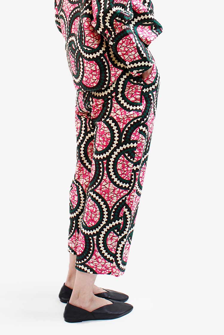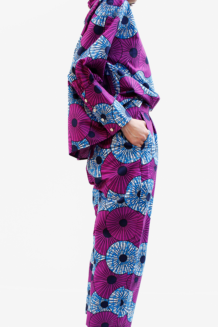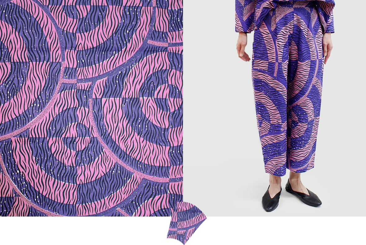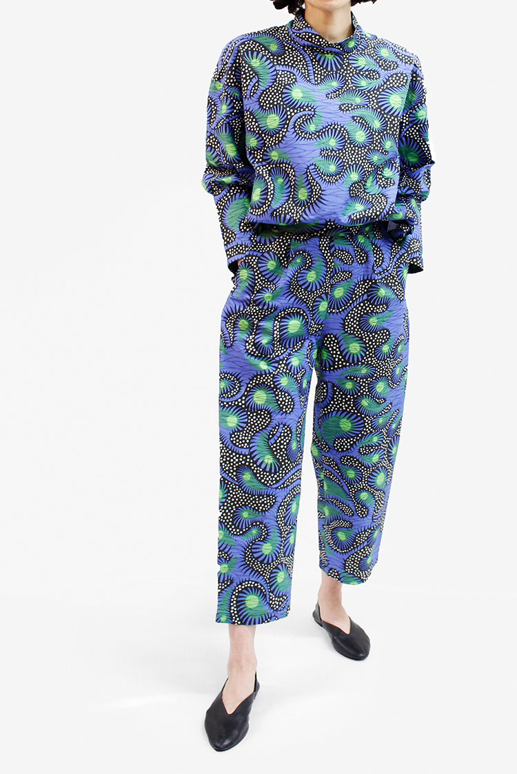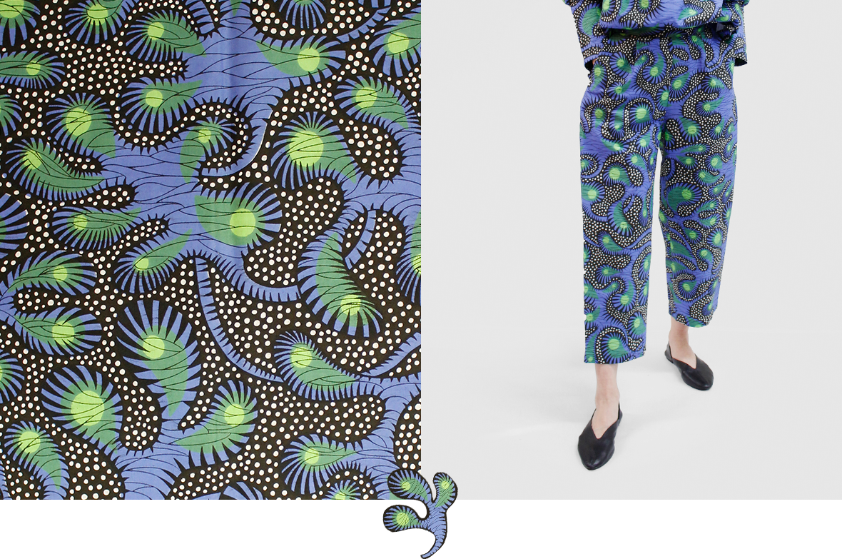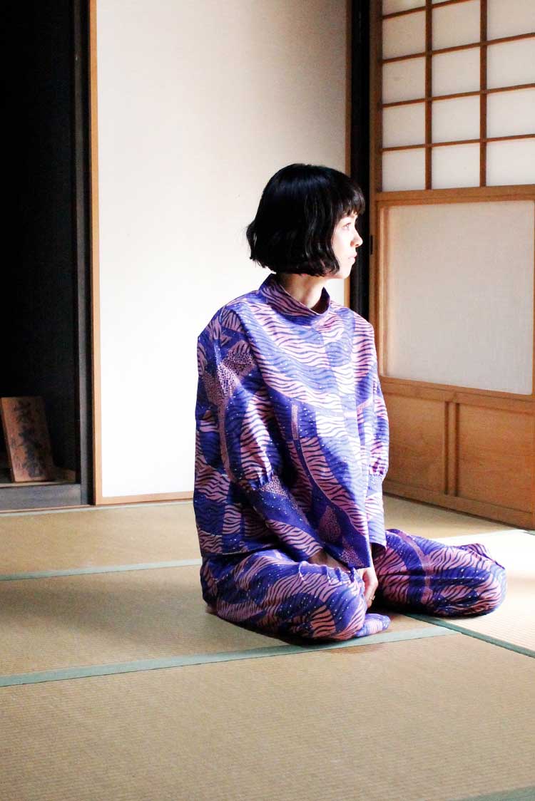 春の気配を感じてポジティブな色彩に心躍る。エシカルなプリント生地にTOKYOエッセンスを加えた着こなしを楽しんで。