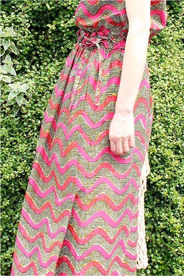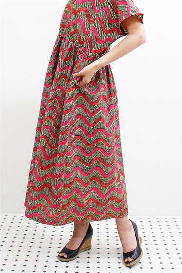 リボンテープ柄ロングワンピース