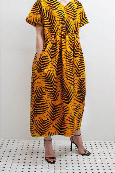 ハッピーコイン柄 Vネック ロングワンピース