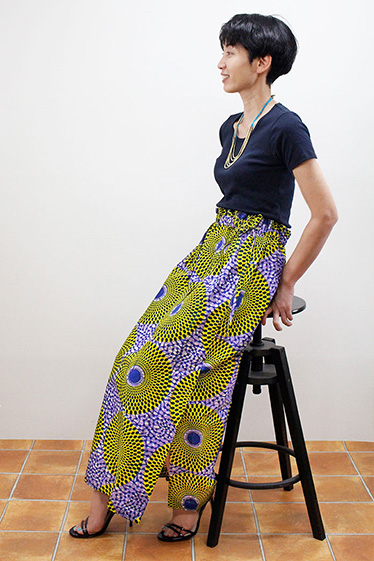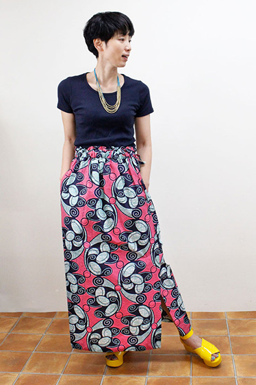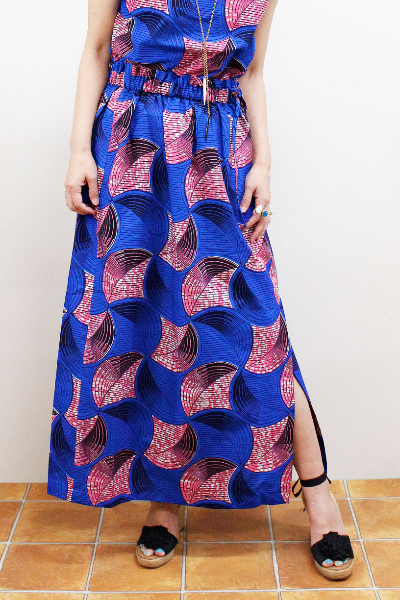 サークル柄サイドスリット ロングスカート
