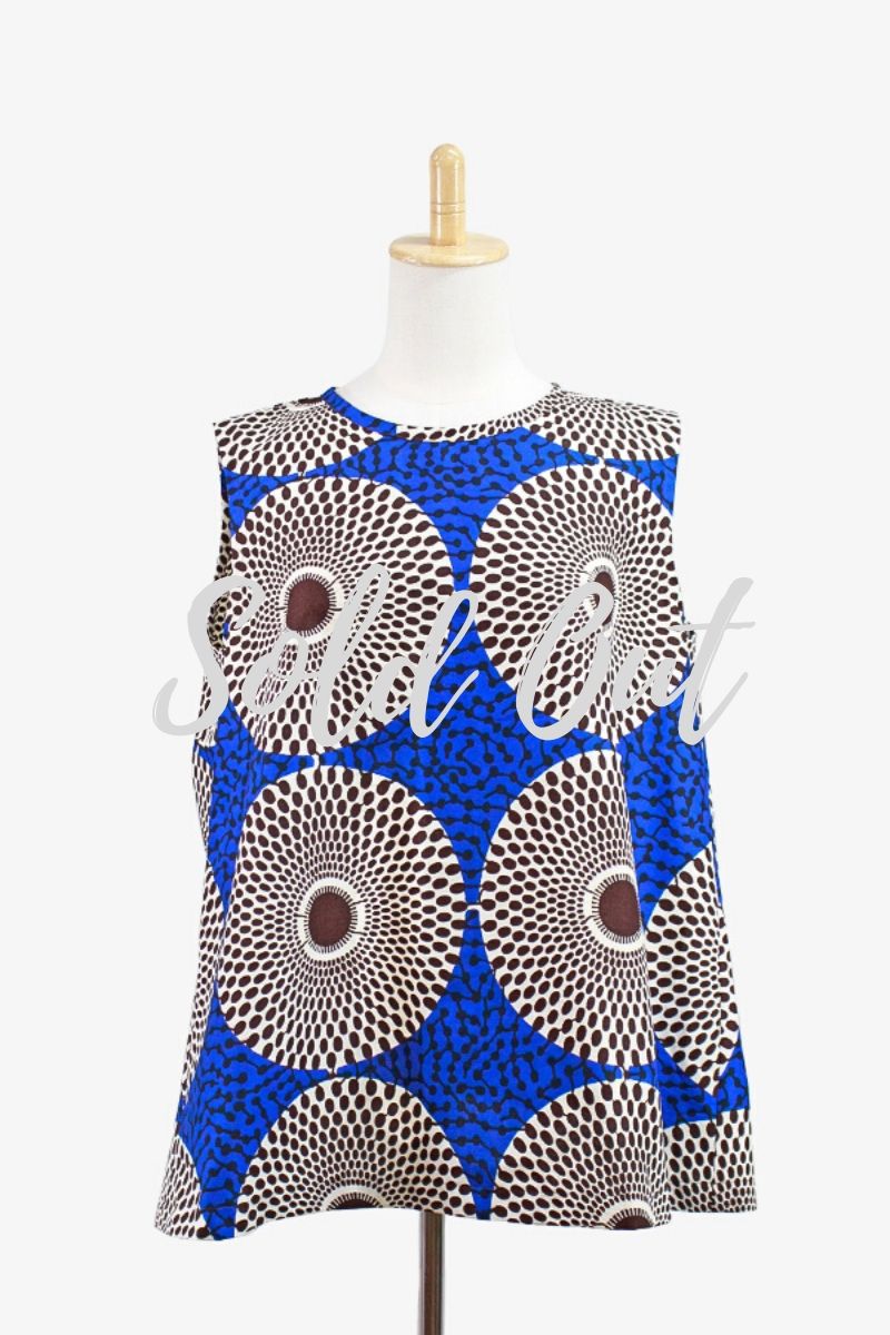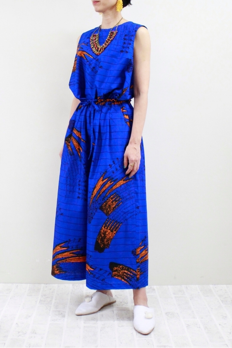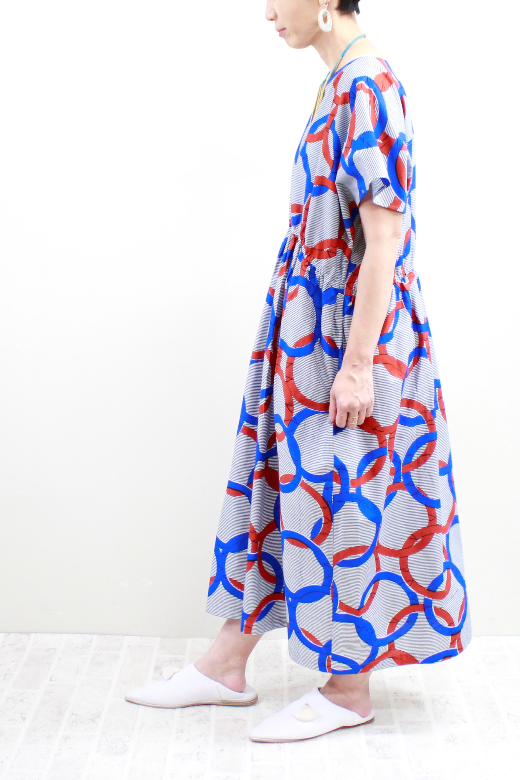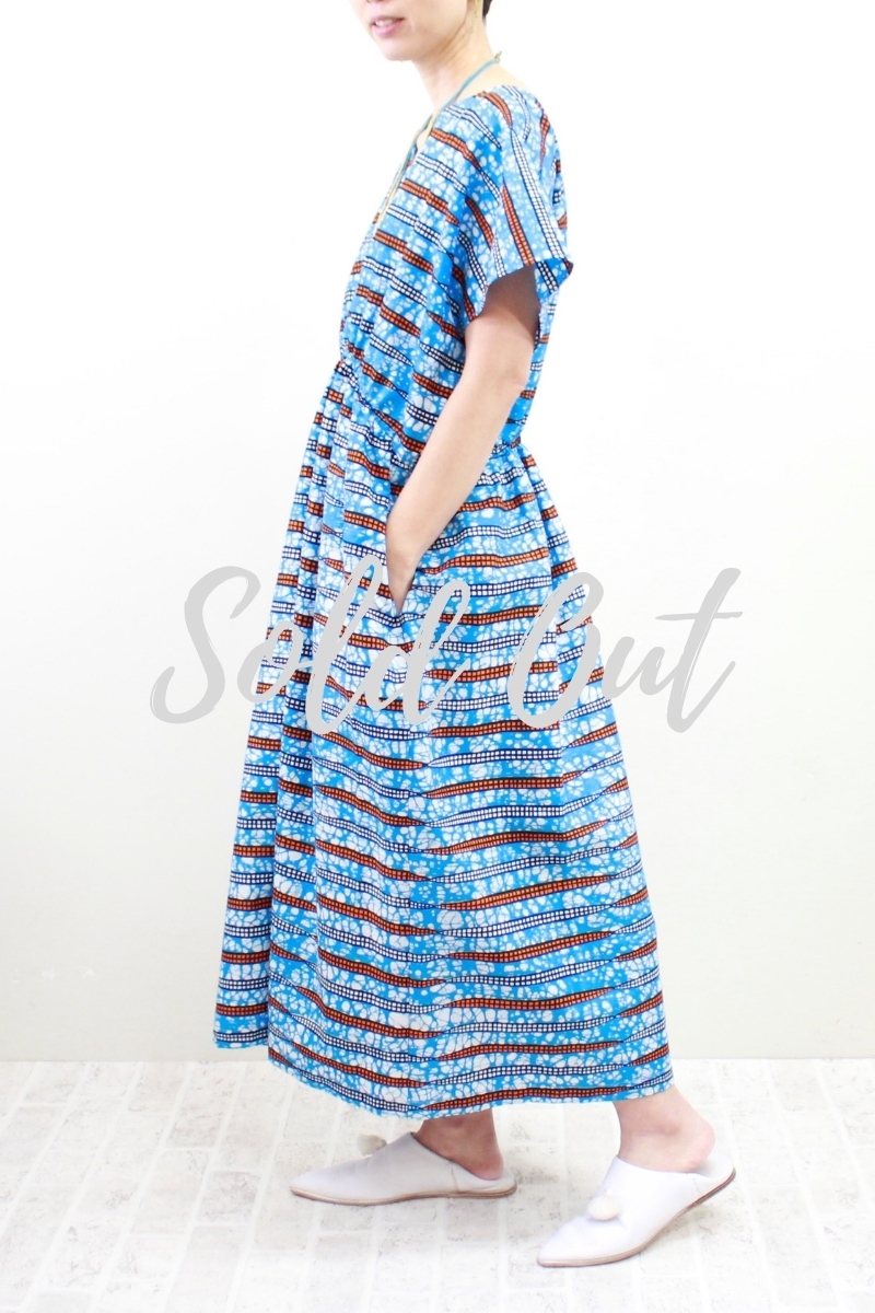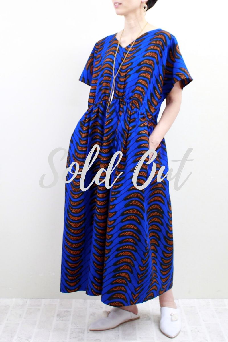 サークル柄(ブルー)Vネックロングワンピース