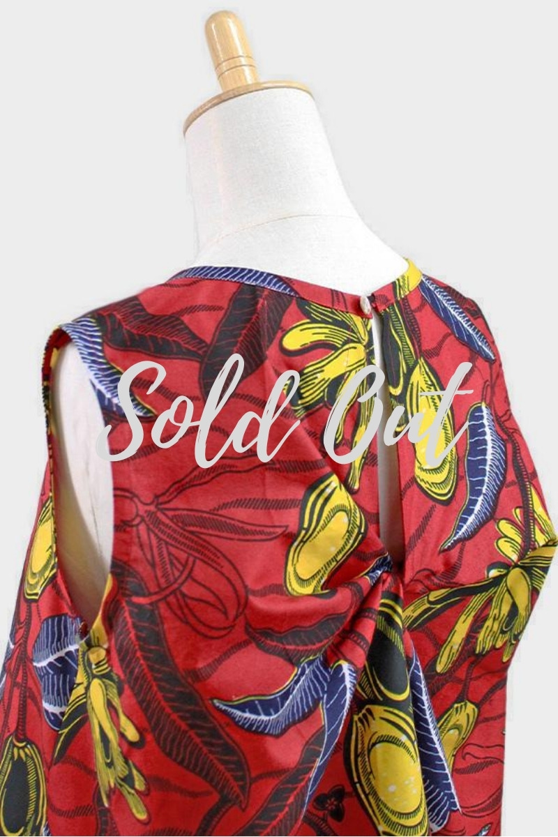 ロングリーフ柄Vネックロングワンピース