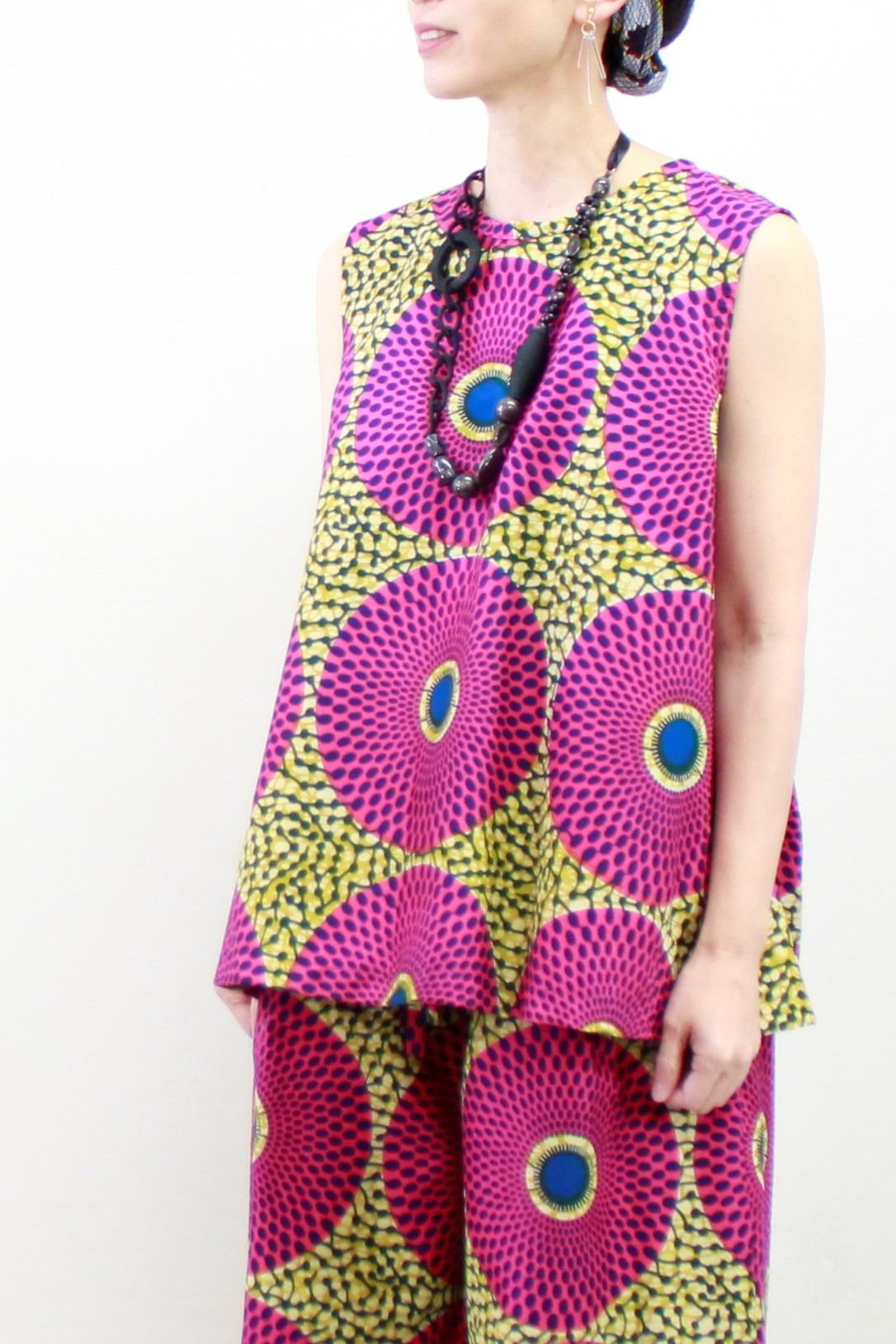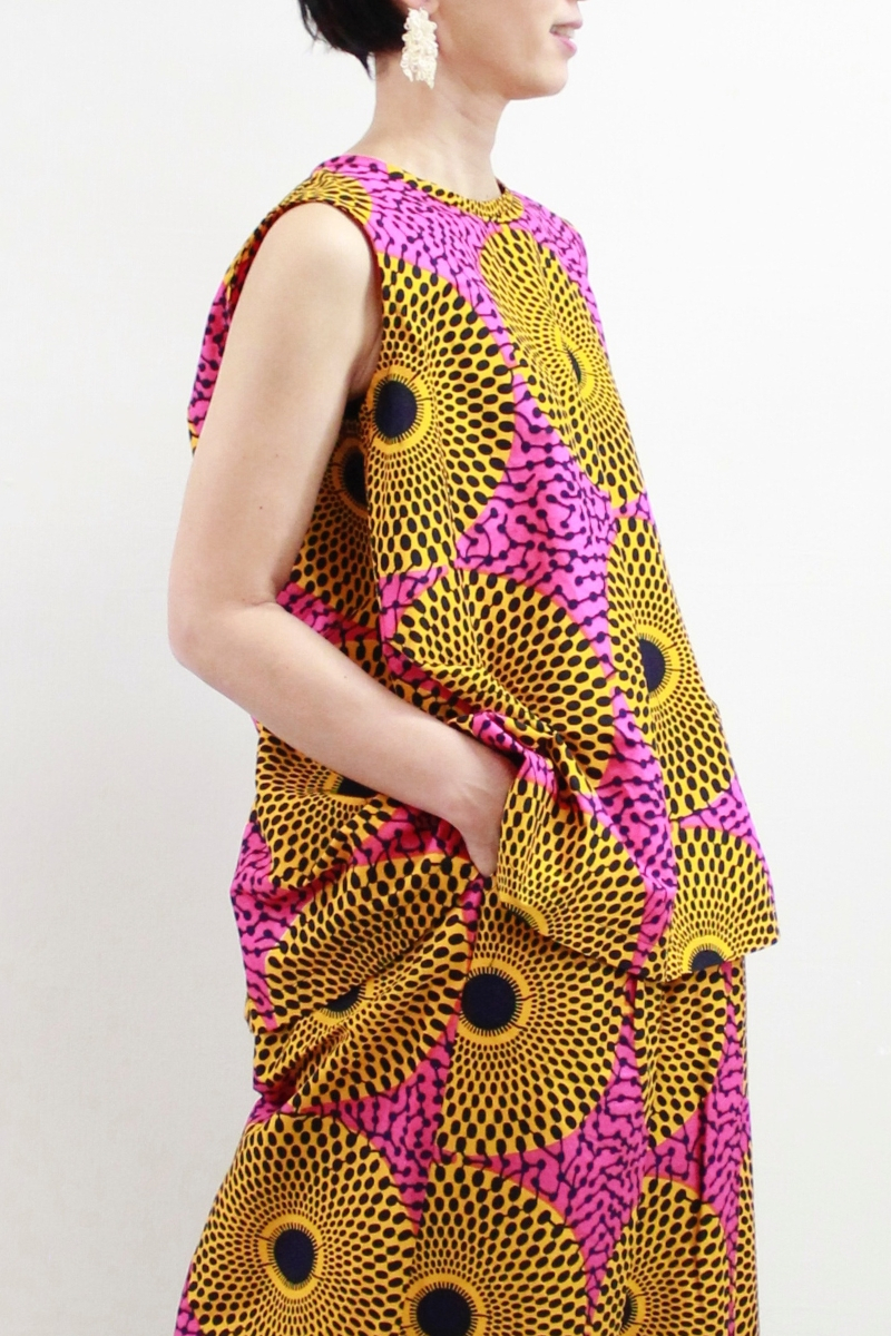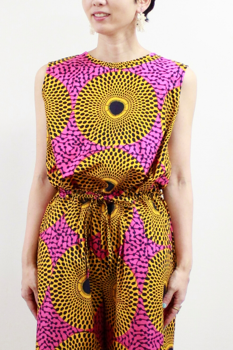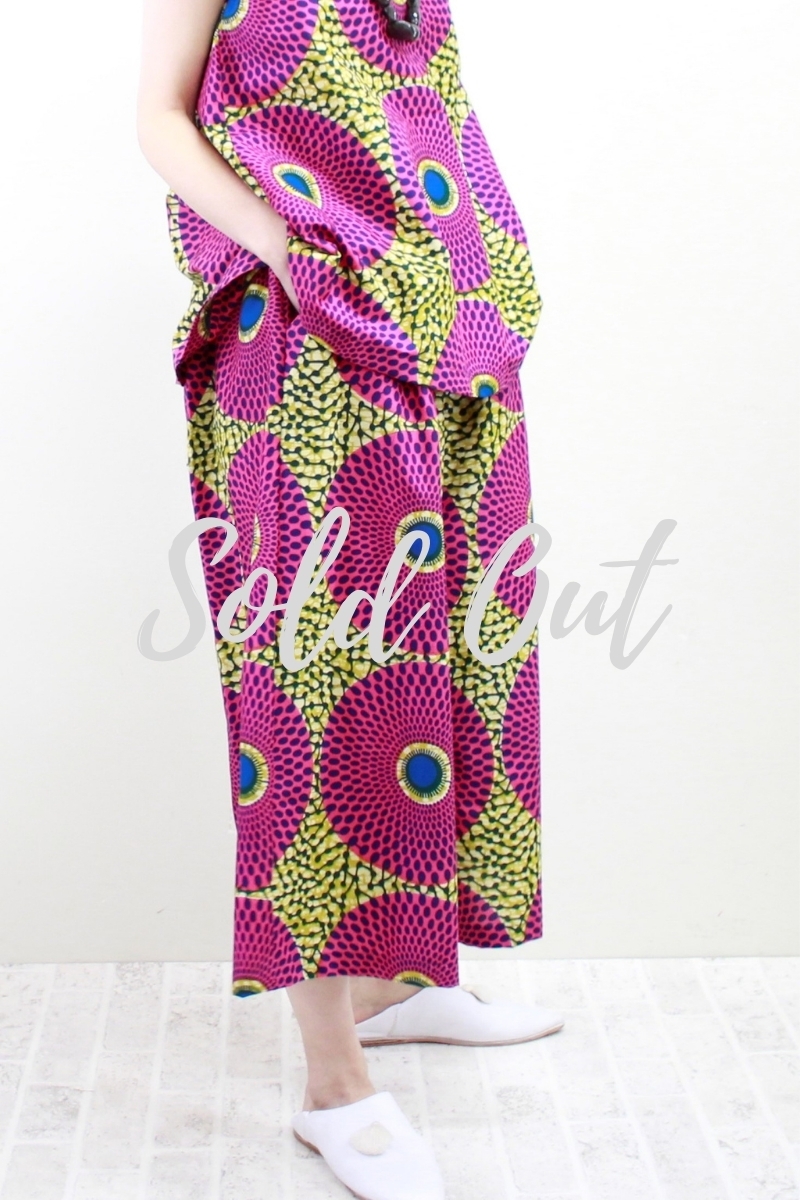 サークル柄(ピンクイエロー)柄ワイドパンツ