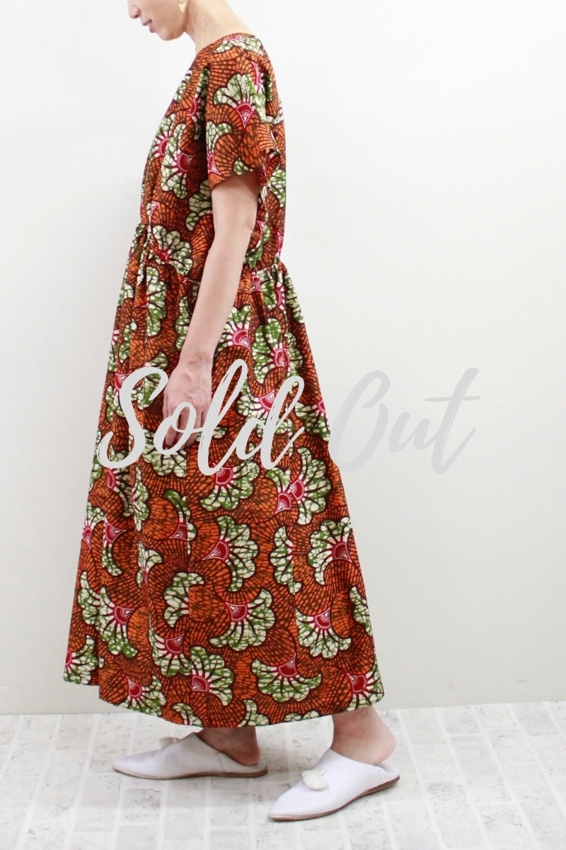 サークル柄(ピンクカーキ)Vネックロングワンピース