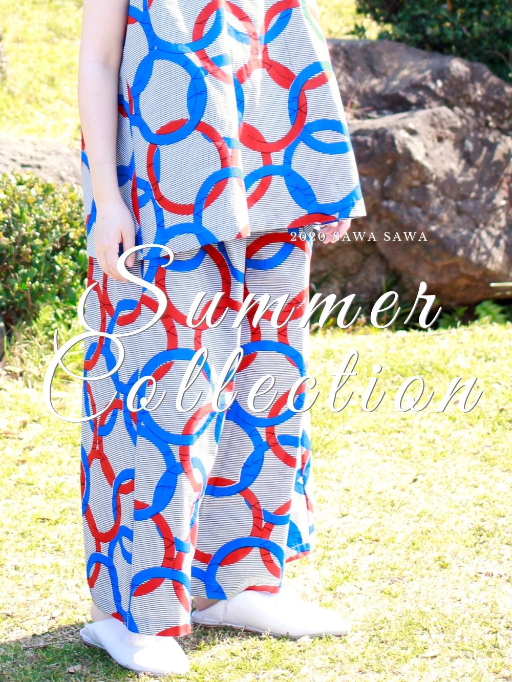 サークル柄(ブルー)ワイドパンツ