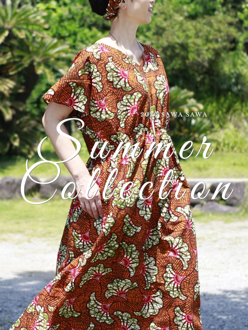 シダ柄Vネックロングワンピース
