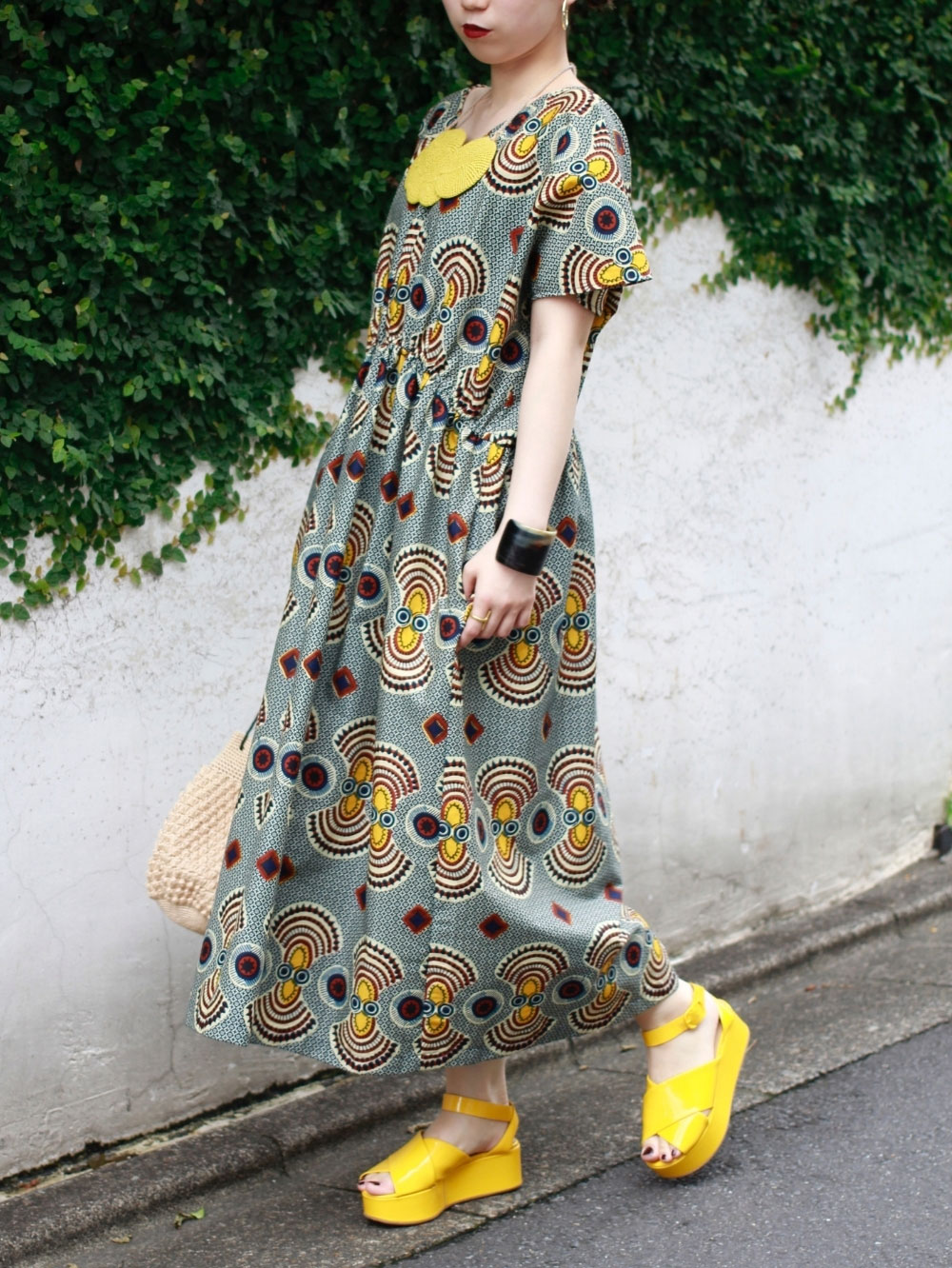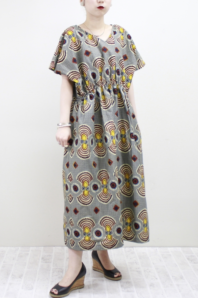 Obaapa柄バックツイストワンピース