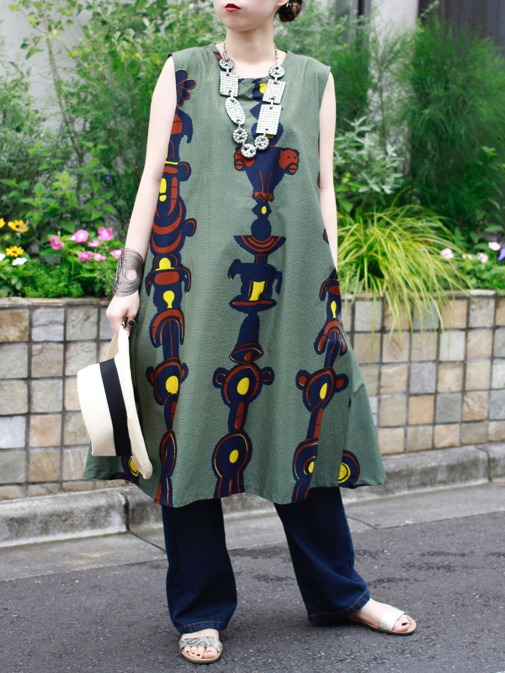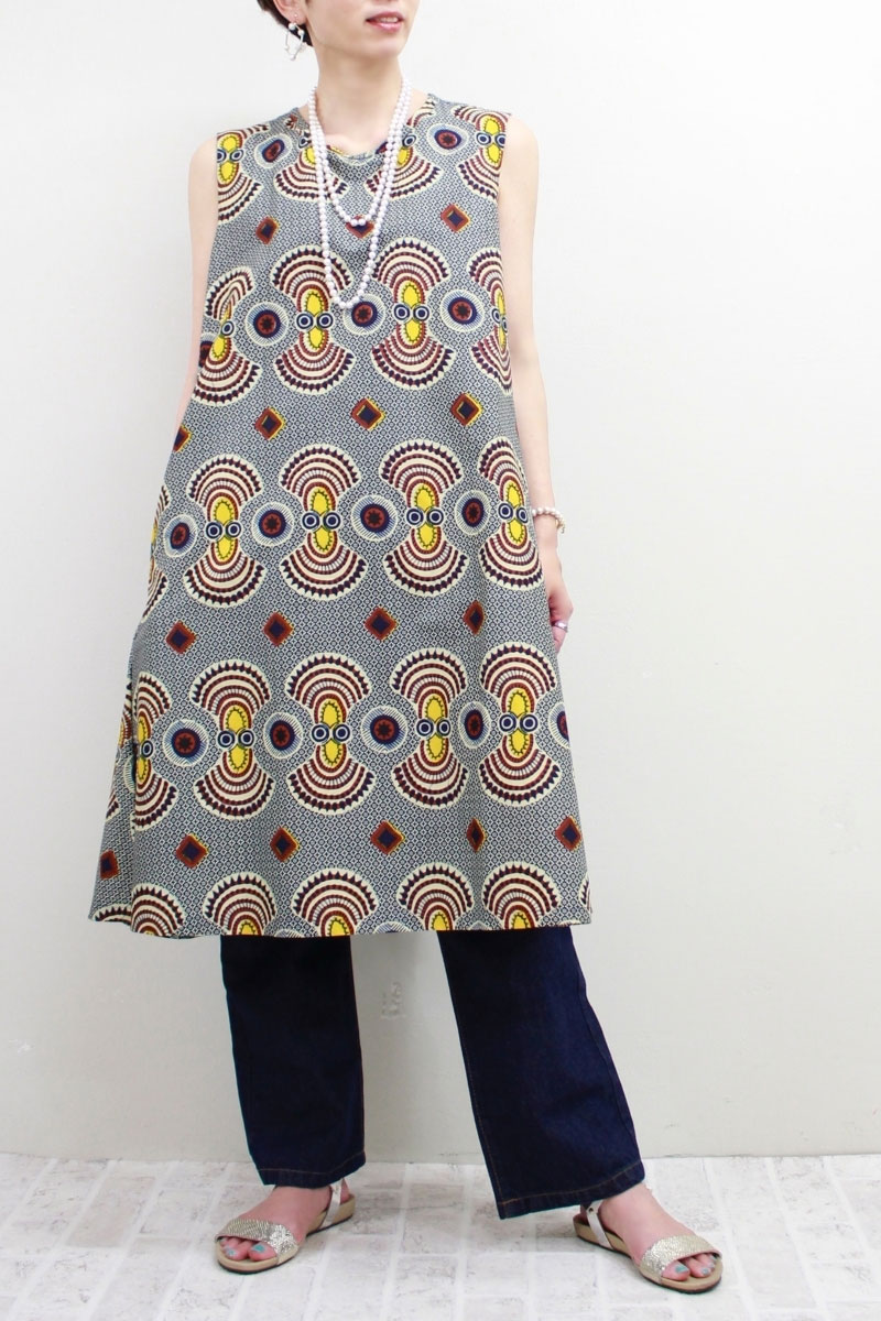 トーテムポール柄バックツイスト チュニック