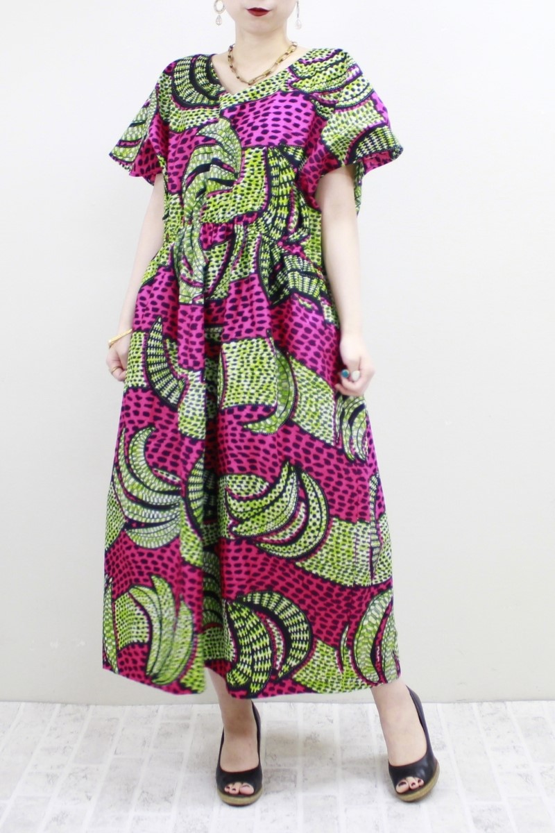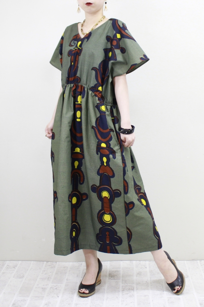 Obaapa柄 バックツイストワンピース