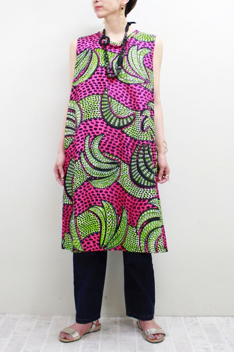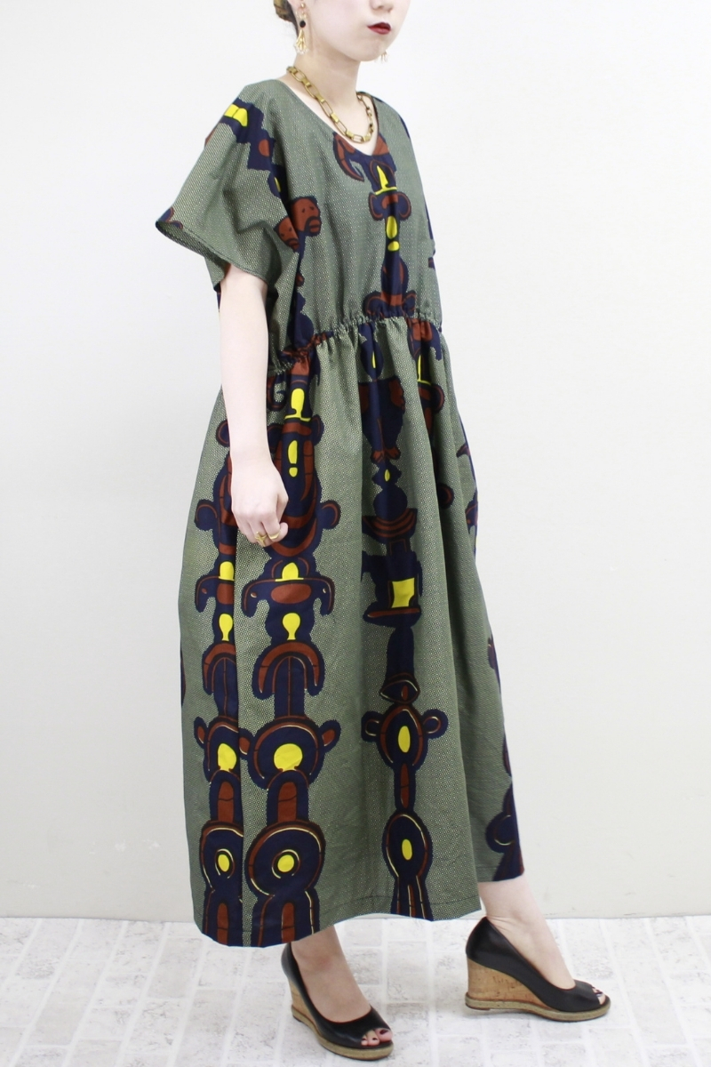 トーテムポール柄 バックツイスト チュニック