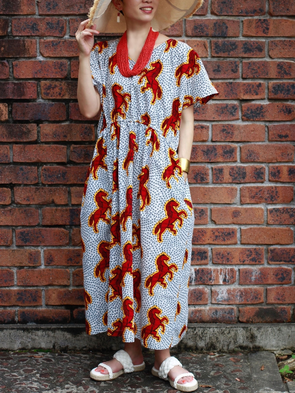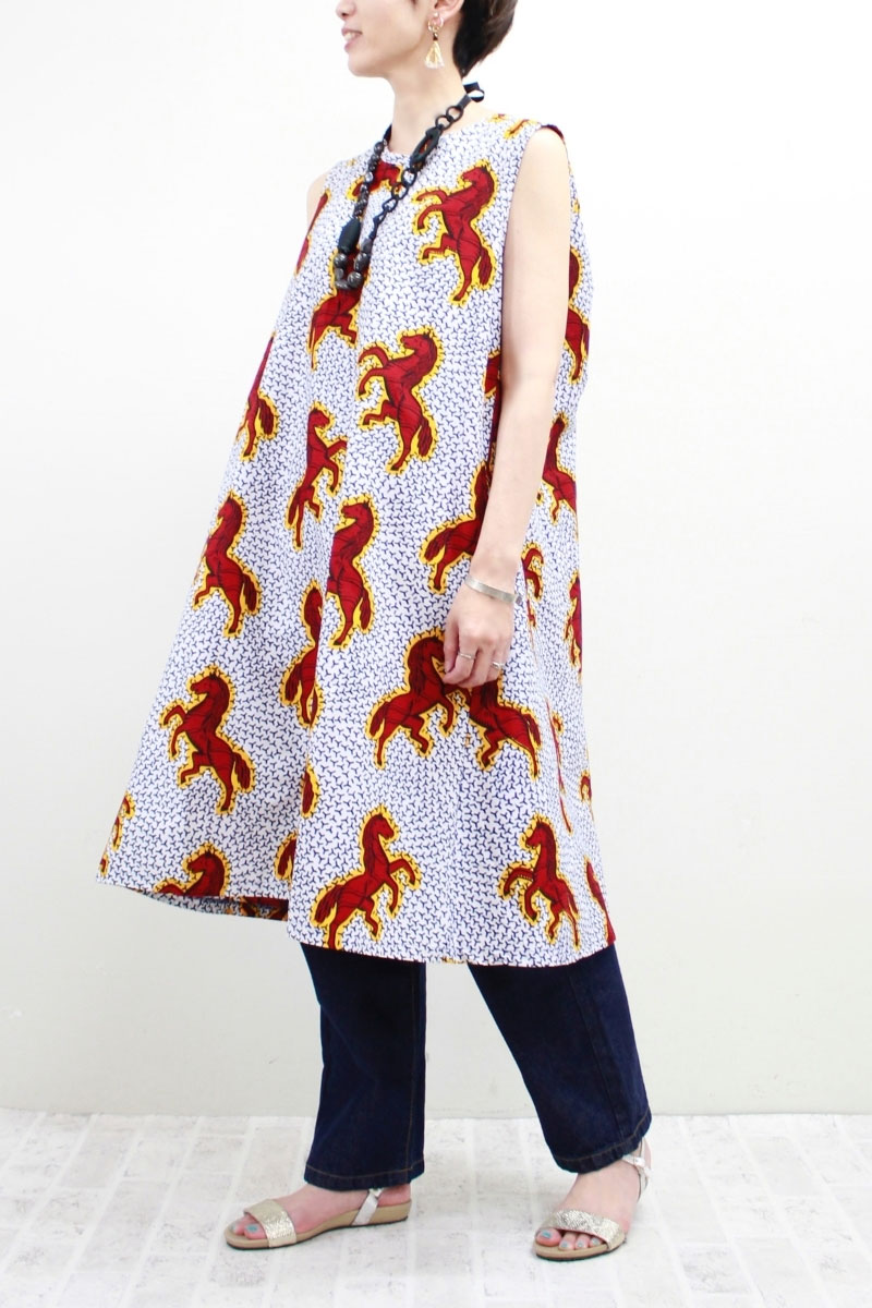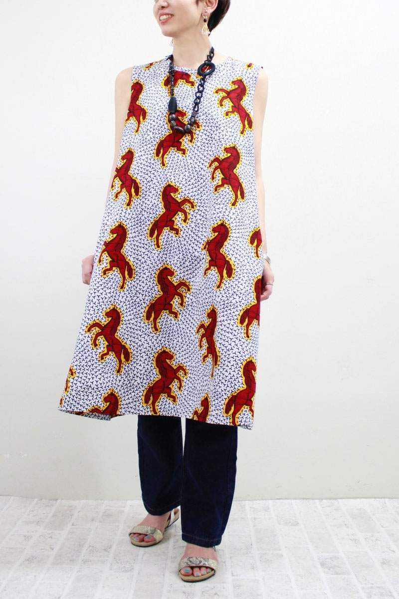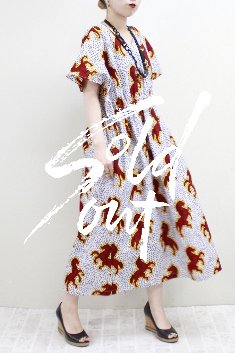Jumping Horse柄 Vネック ロングワンピース