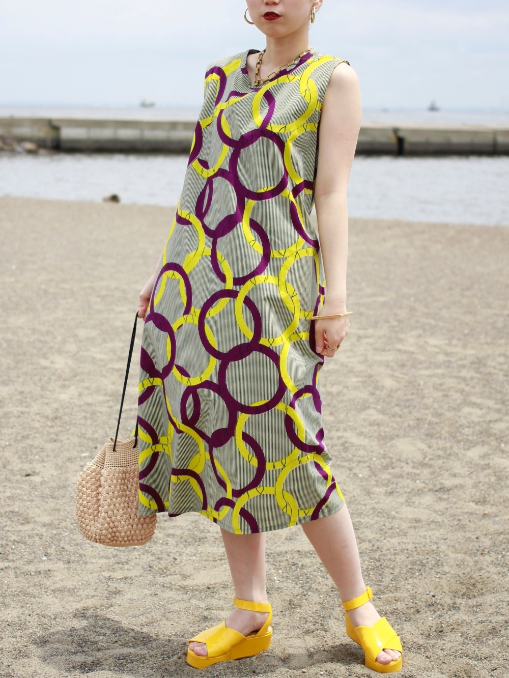 エッグ柄バックツイストワンピース