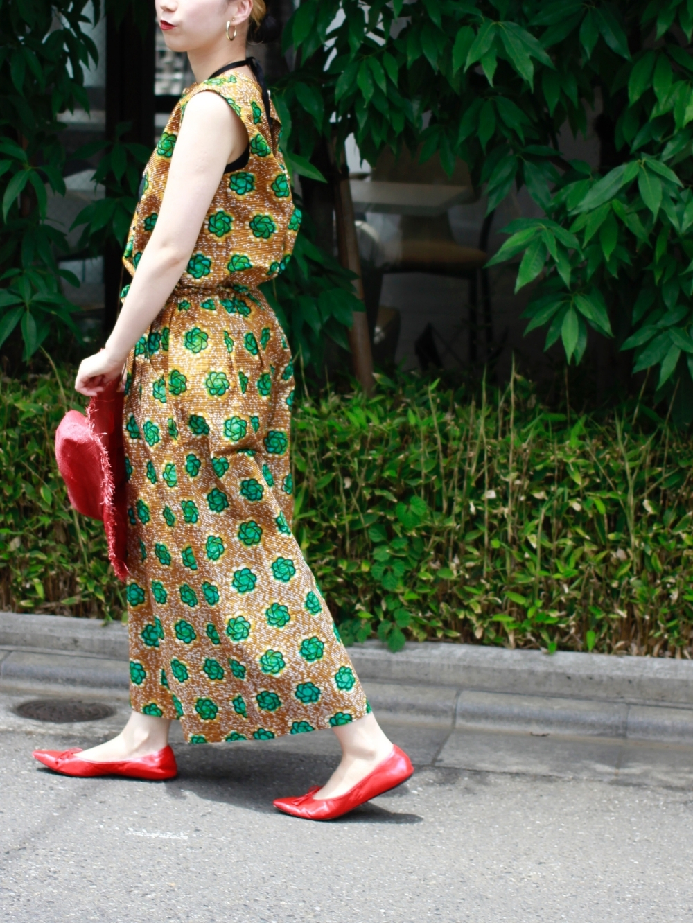 リーフ柄バックツイストワンピース